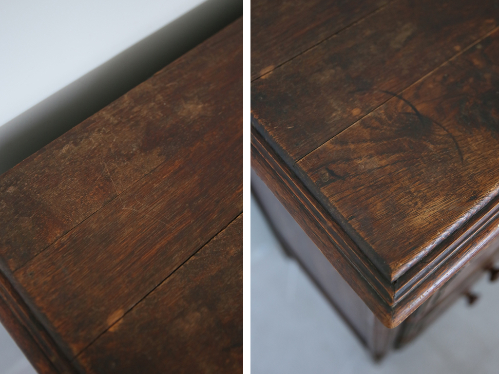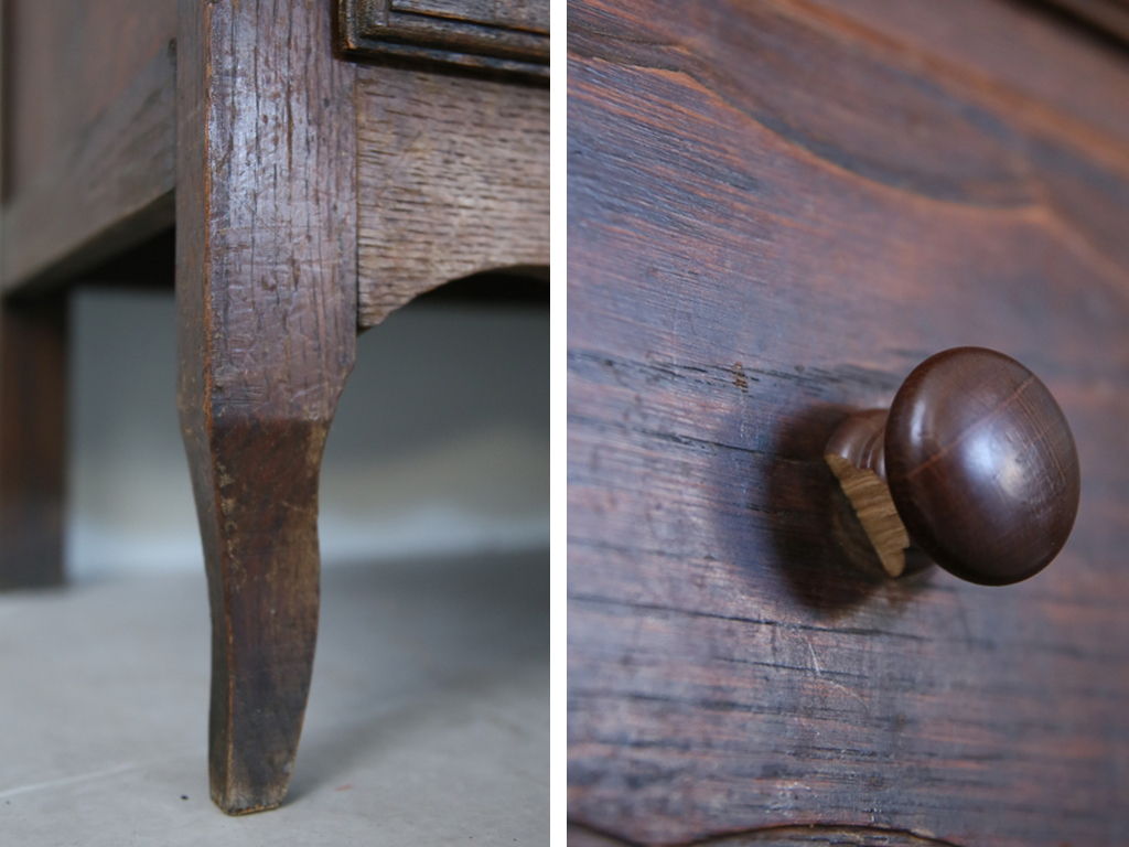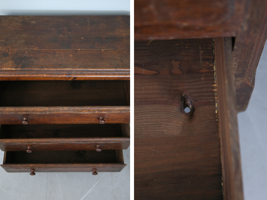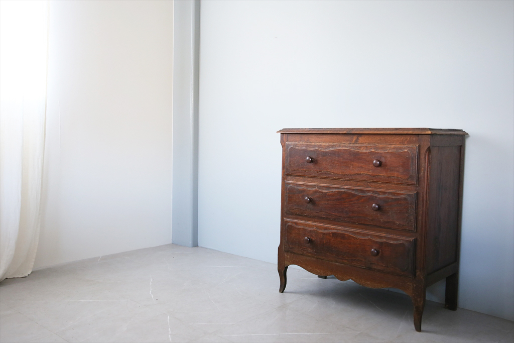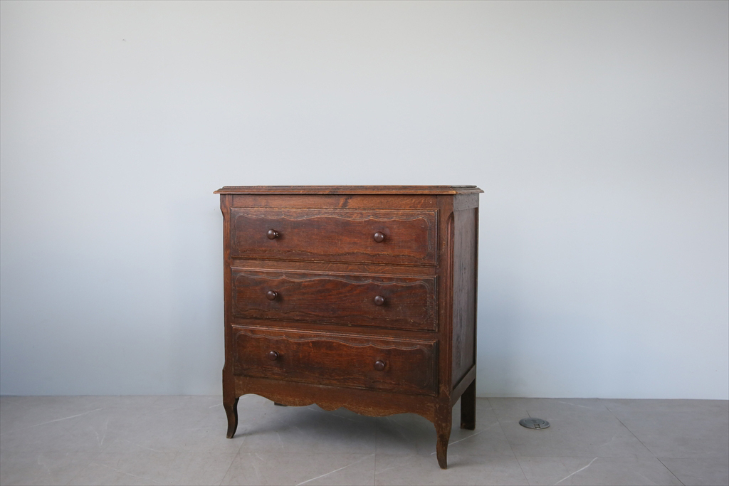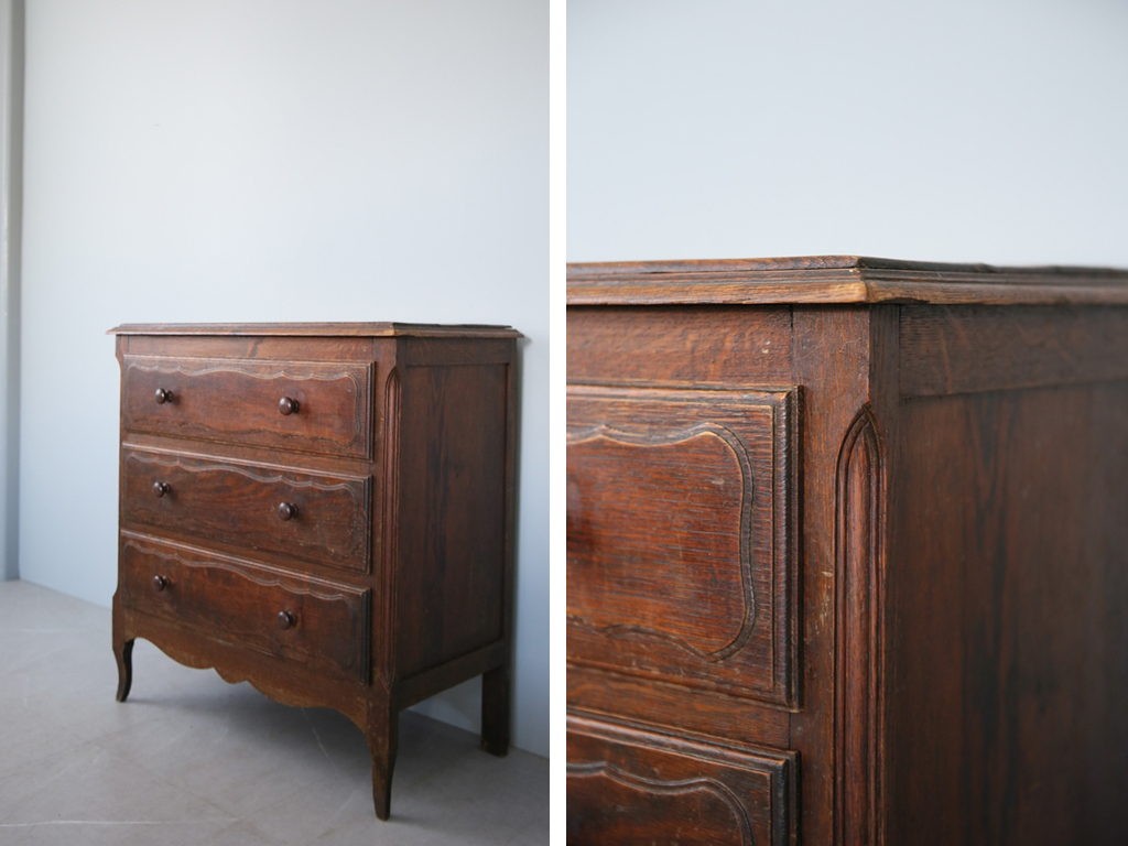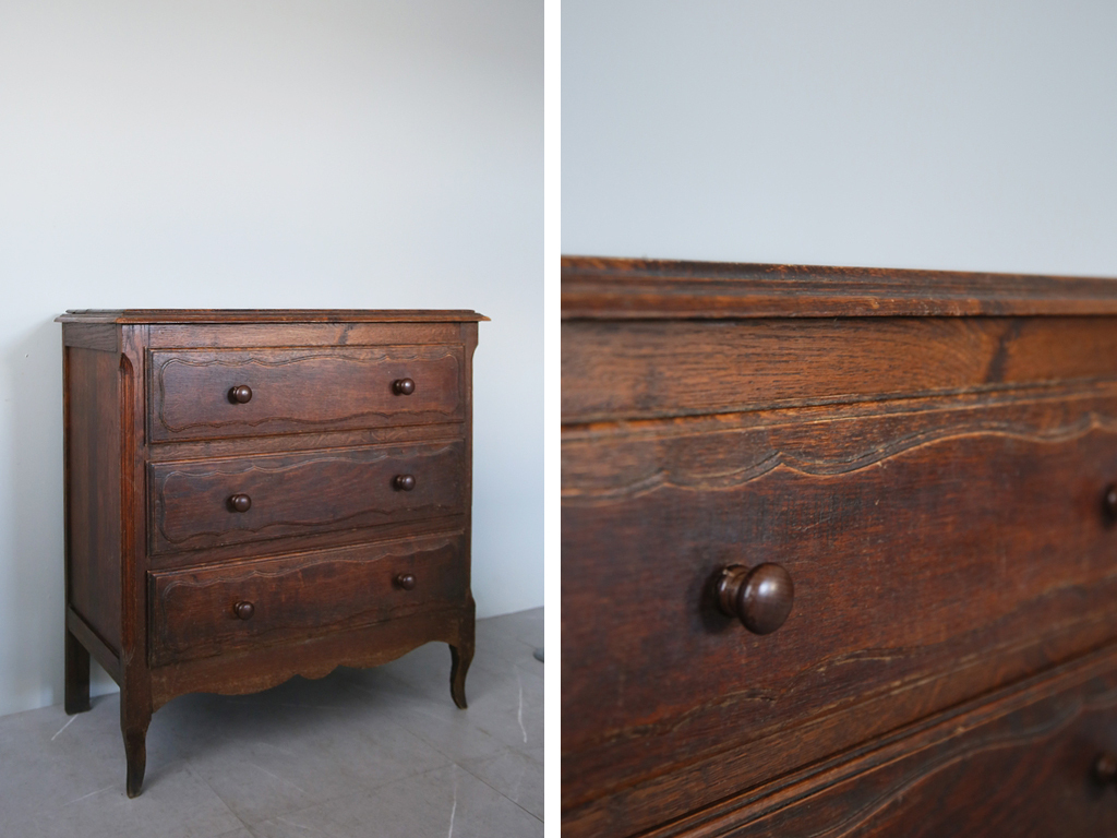 フランスの田舎で見つけた猫脚の3杯ドロワーです。