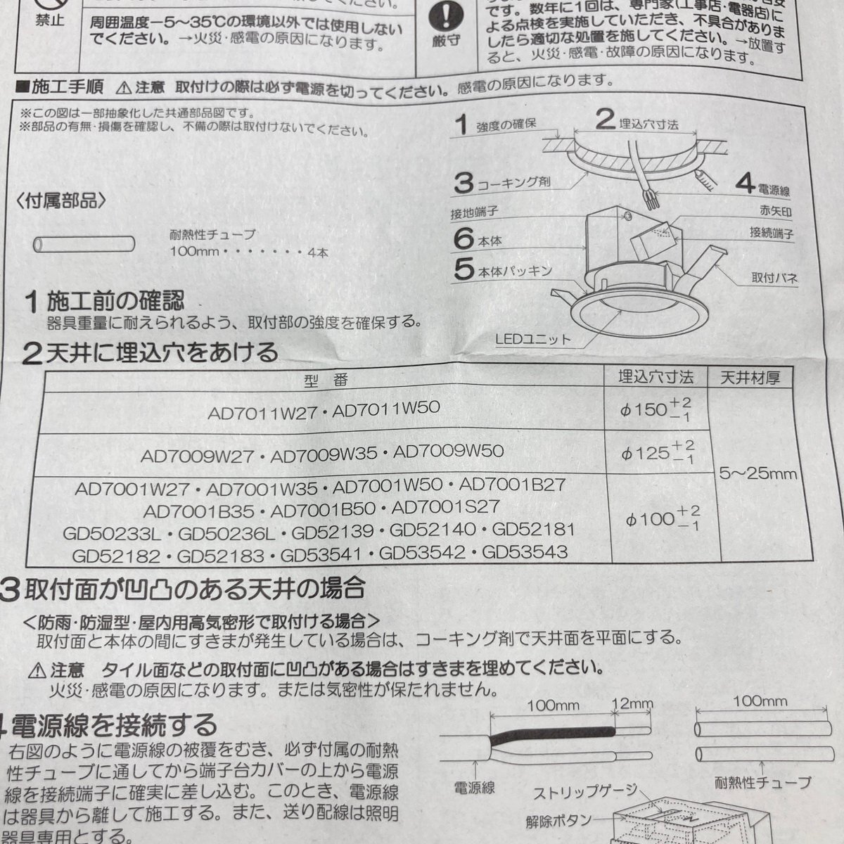 | 商品 | コイズミ 2022年製 断熱施工用ダウンライト 「AD7001W35」 ■屋外用 LED球付き SB形 埋込穴φ100 天井材厚5~25mm 取説あり ☆計4点 ☆新品☆ |