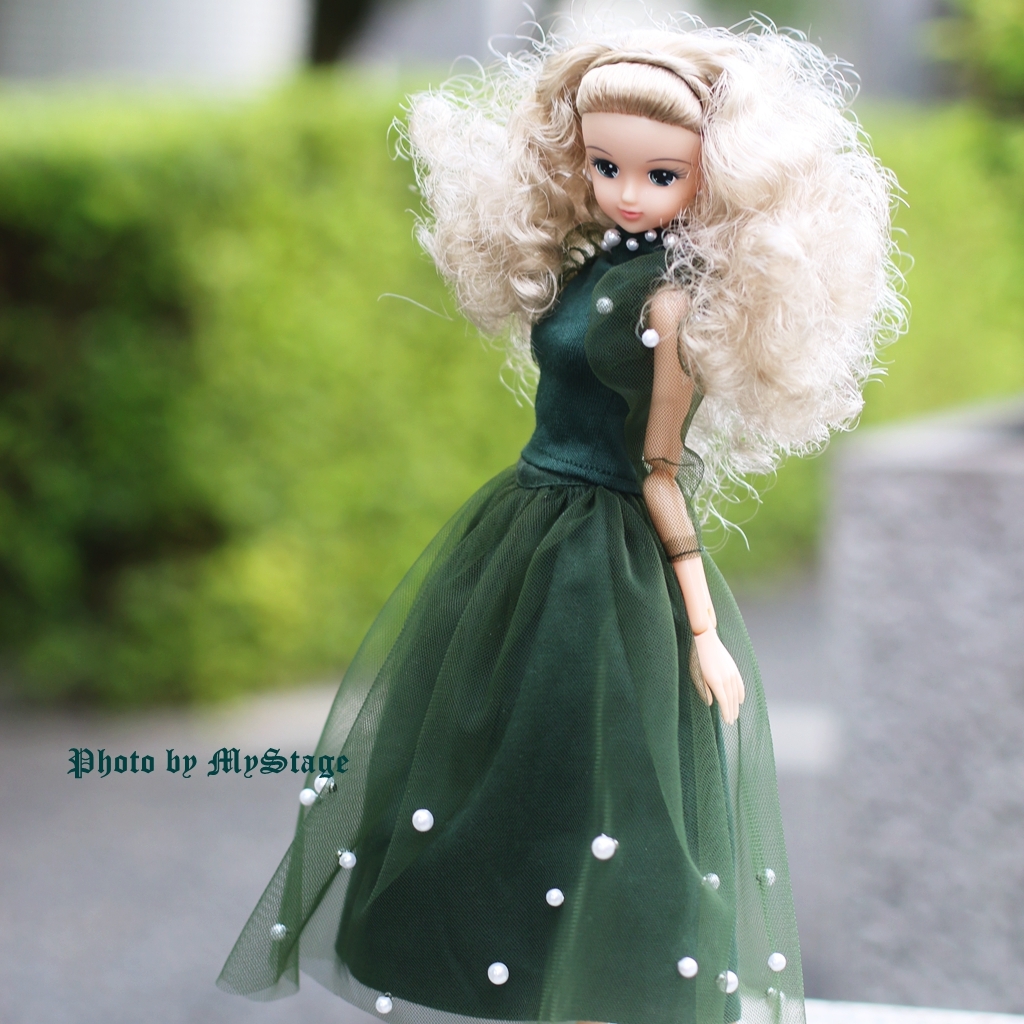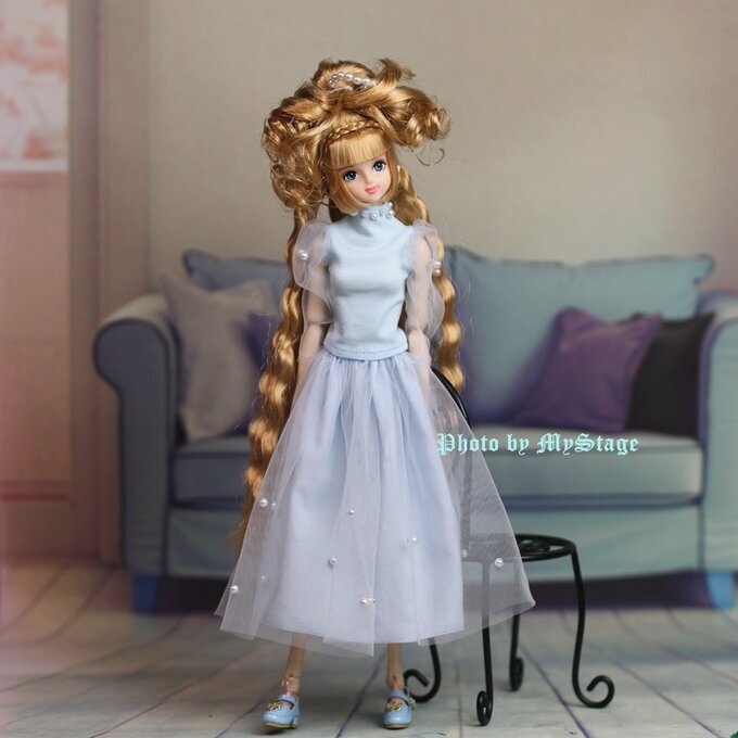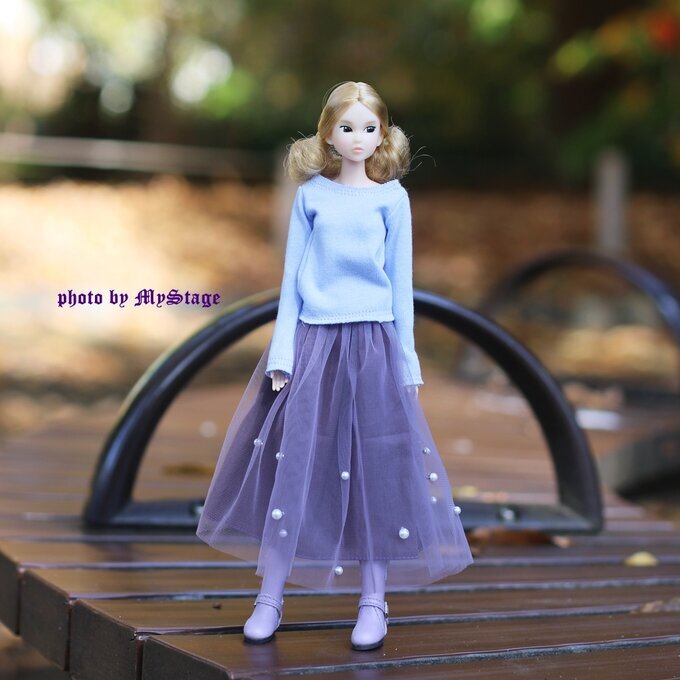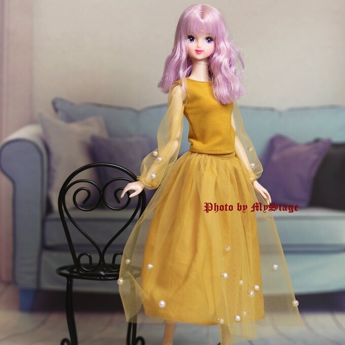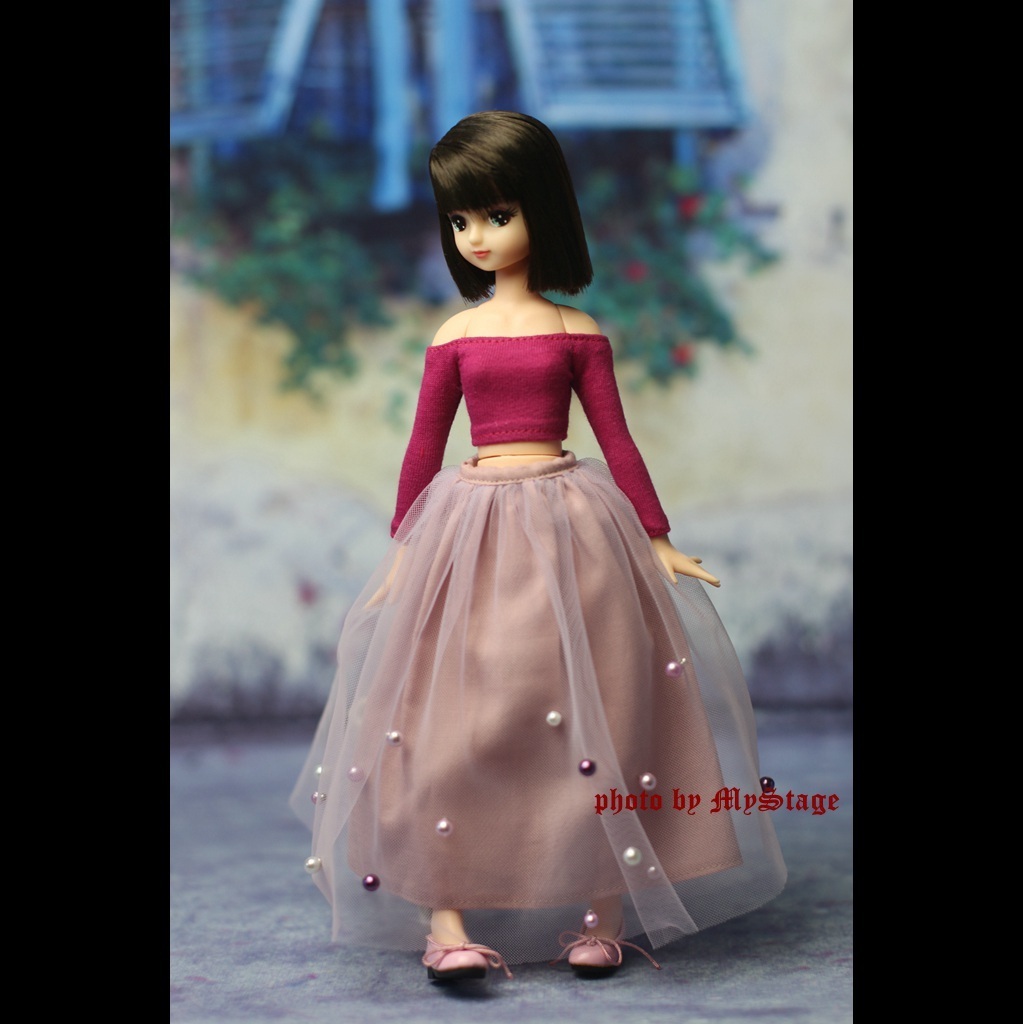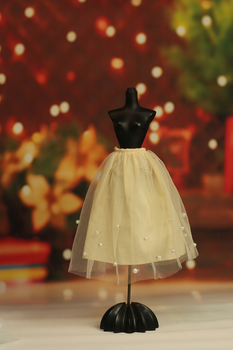 人形服S112-015ベージュチュールビーズスカートmomoko、ジェニー、OBITSUボディ、MISAKI、ピュアニーモ