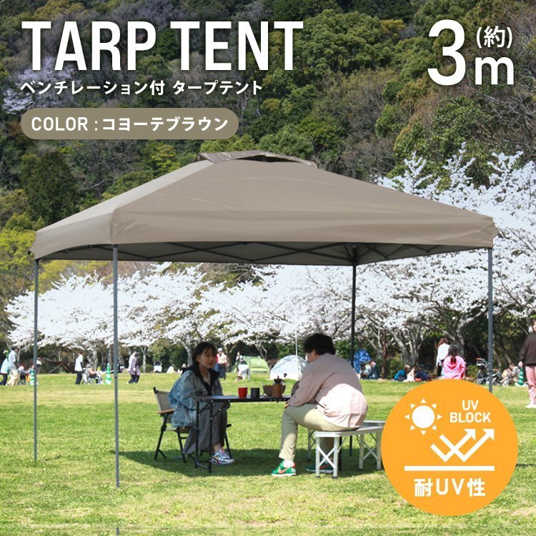 | 強い日差しでもこの3m×3mのタープテントは快適な日陰を作ってくれます! |