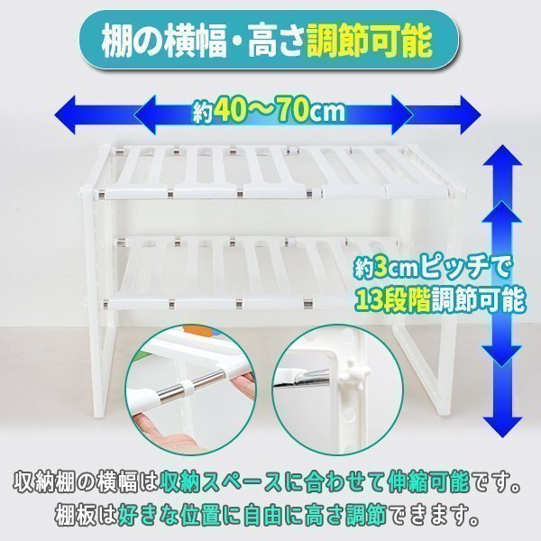 シンク下 収納ラック 伸縮式 キッチン 2段 スライド 高さ調節 簡単組立 流し台下 洗面台下 収納ラック