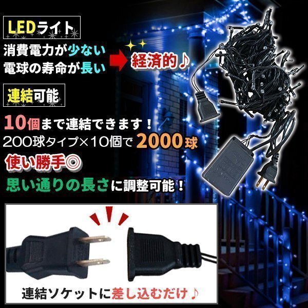 AC式 イルミネーション コンセント 連結可 LED イルミネーションライト ツリー ライト 200球 200灯 15m 黒線 ブルー