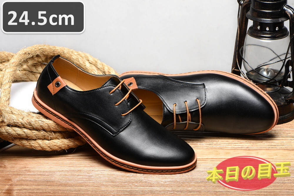1円~ ☆ メンズ ビジネス レザー シューズ ブラック サイズ 24.5cm 革靴 靴 カジュアル 屈曲性 通勤 軽量 仕事 【610】