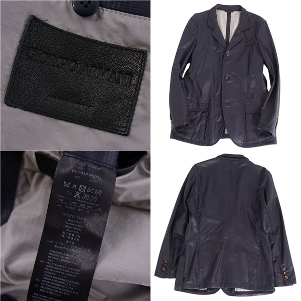 | 美品 ジョルジオアルマーニ GIORGIO ARMANI ジャケット レザージャケット テーラード ラムレザー メンズ 44(S) ネイビー |