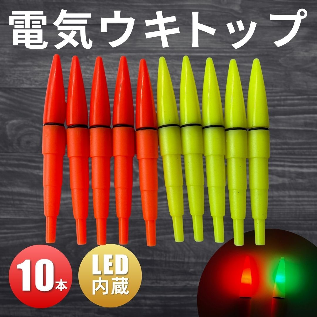 電気ウキトップ LED 夜釣り ライト 竿先 穂先 海 尖型 赤 緑 10本