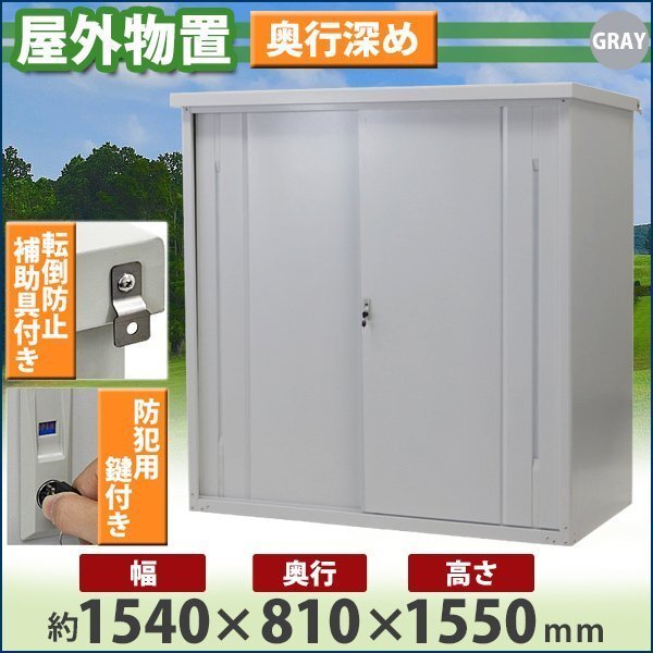 | 商品名 | 送料無料 屋外物置 スチール製 家庭用収納庫 鍵付き 灰 幅約1540mm×奥行約810mm×高さ約1550mm 倉庫 納屋 物置き スチール物置 スチール収納庫 ガレージ 収納 可動棚 吊り戸 吊戸 吊り扉 上吊り 吊引き戸 庭 ガーデン グレー monookishw15d75h15gr |