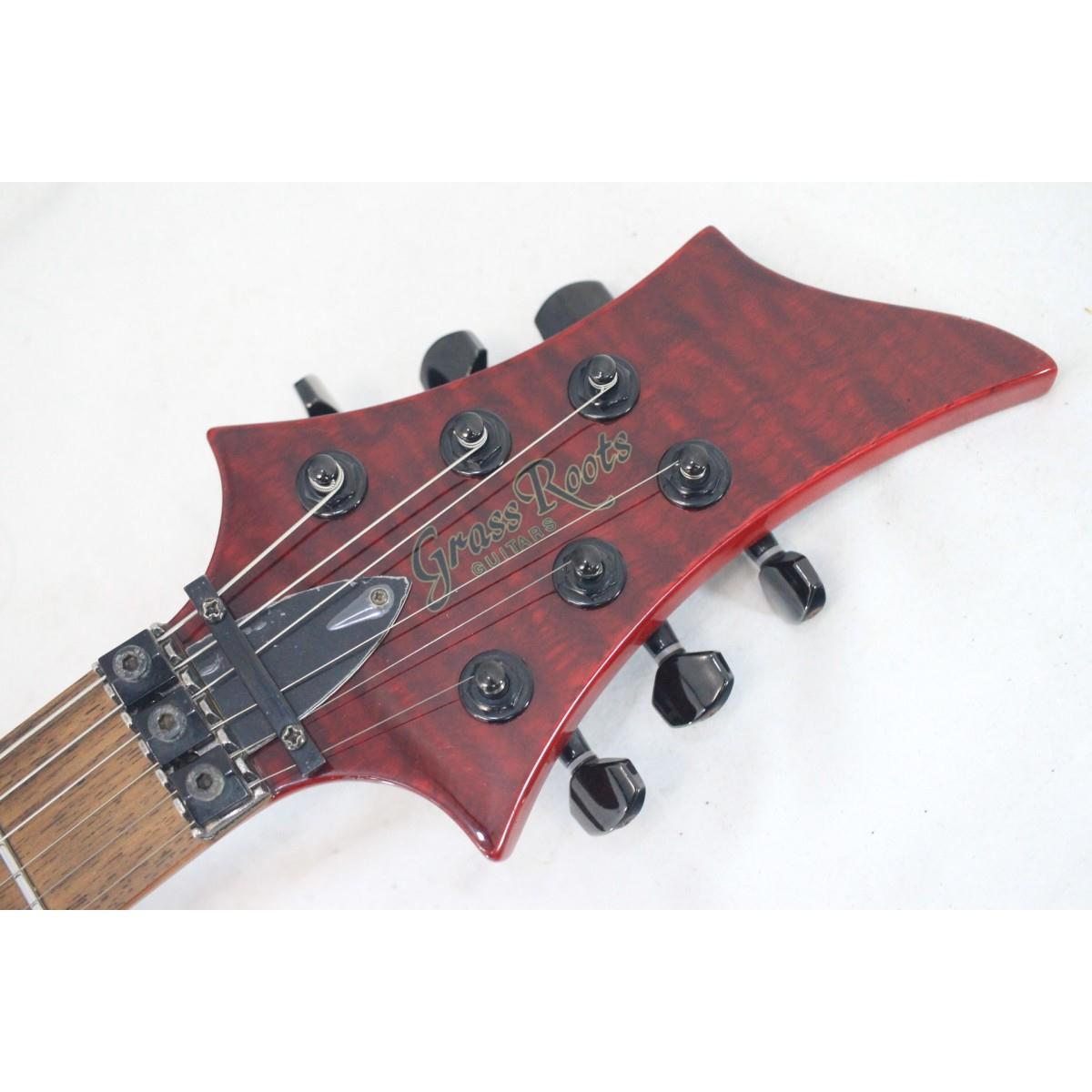 2000年代、アニメのタイアップなどを通し人気を獲得したヴィジュアル系バンド『ナイトメア(NIGHTMARE)』のギタリスト『柩(ひつぎ)』モデル!ESPのREINDEERをもとに製作された本人使用機『ESP N-HH-460 覇~HAOOOMARU~』のコストパフォーマンスとして発売されたグラスルーツ版モデル。アッシュの杢目が映える強烈なシースルーレッドカラー、フロイドライセンストレモロ、さらにこの価格ではほとんどないスルーネック構造が特徴で、安価ではありながらハードロックスペックをしっかりと携えたハイコストパフォーマンスの一本!本家REINDEERモデルも現在では入手しずらく、おてがるに買えるREINDEERモデルとしてもオススメ!今ではなかなか流通が無い為、ぜひお早めにお求めください!