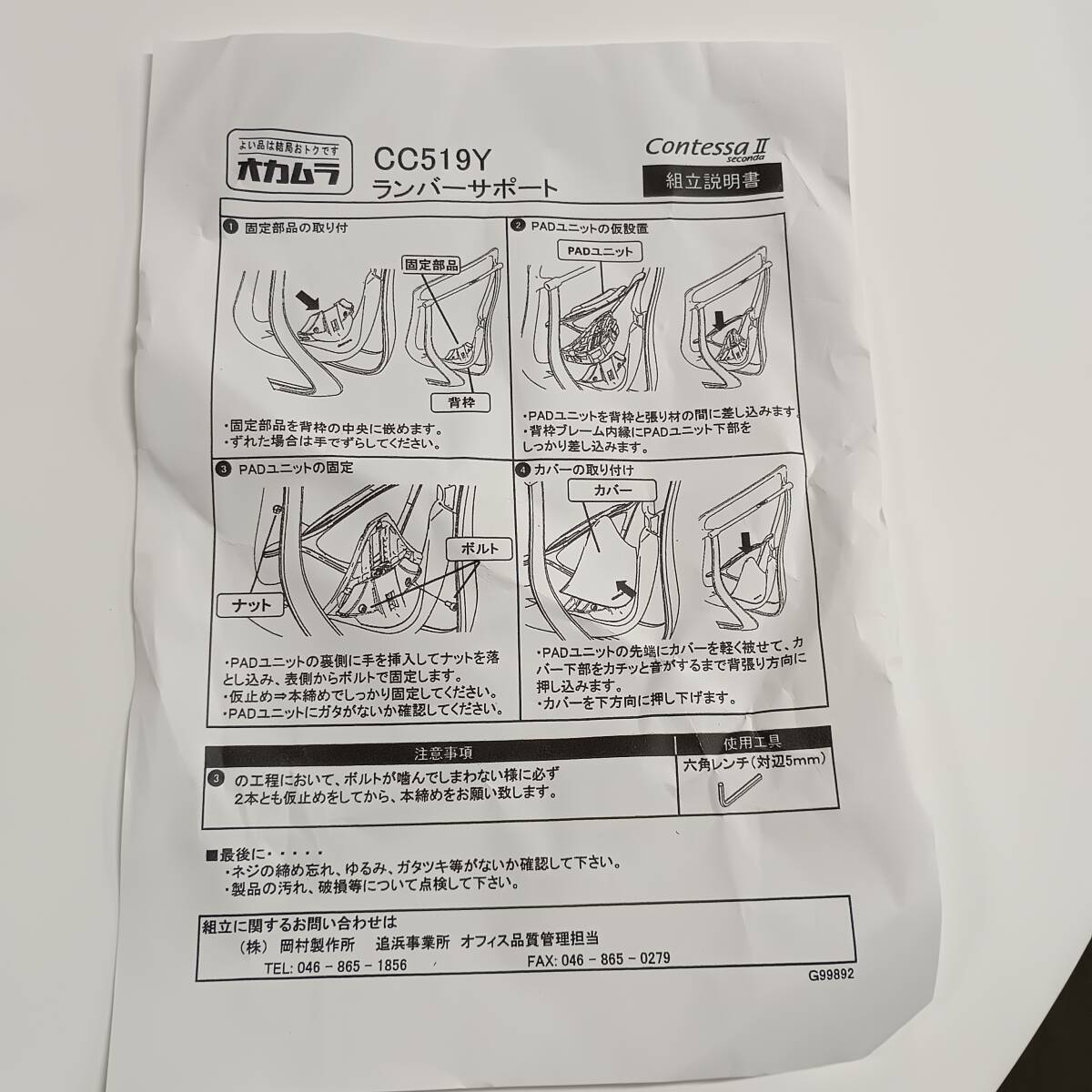 オカムラ(okamura)コンテッサセコンダ用ランバーサポート。