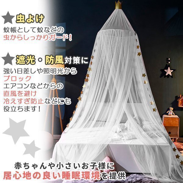 天蓋カーテン ベッド蚊帳 モスキートネット キャノピー モスキーノテント スリーピングカーテン お姫様 安眠 白
