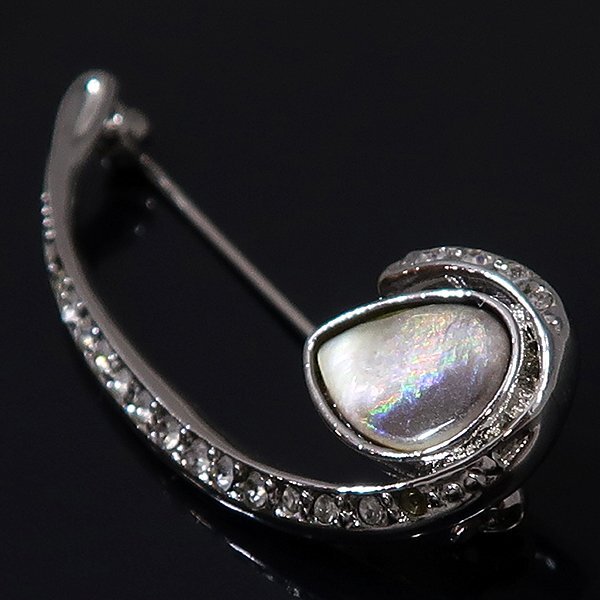 貝 ラインストーン ブローチ
