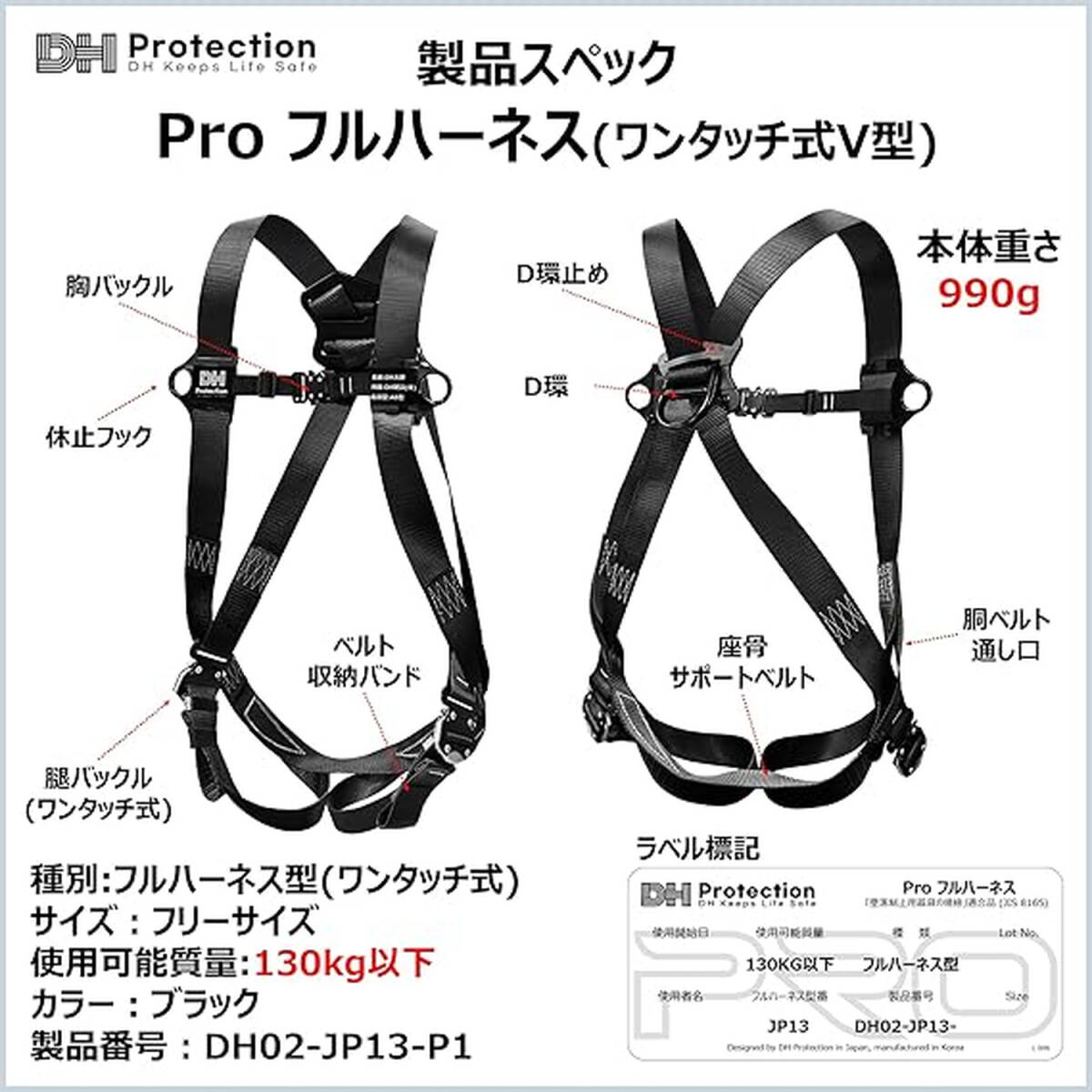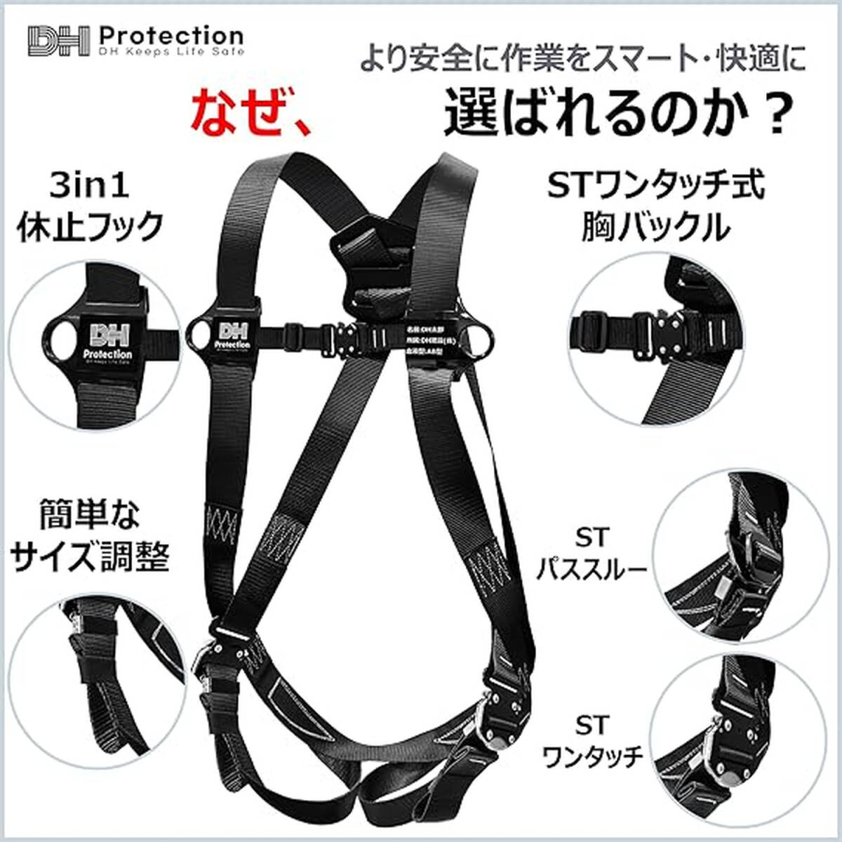 新規格 ST V型フルハーネス ワンタッチ 黒 130kg以下 墜落制止器具 高所作業 安全帯 新規格対応 フリーサイズ