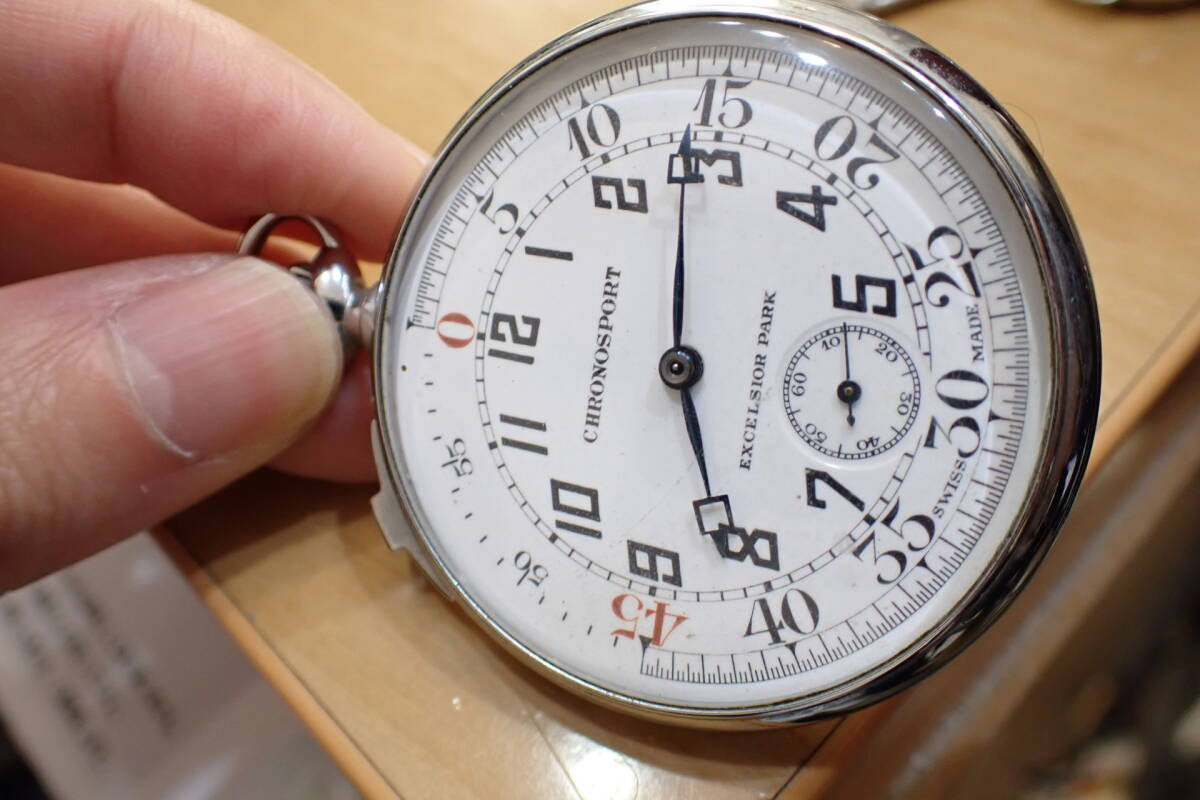 ExcelsiorPark/エクセルシオパーク クロノスポーツ クロノグラフ アンティーク 手巻き腕時計です。 非常に珍しい、古い手巻きのクロノスポーツです。 ケースには細かい傷ありますが大きな目立ったダメージはありません。 文字盤は琺瑯製のようで、目視では綺麗です。 風防にスレあります。 他写真でご確認ください。 ゼンマイを巻いて数分程度の確認ですがカチカチと動いています。 使い方は不明です。 オーバーホール前提でジャンクでお願いします。 ケース径:約50mm ・他にいろいろ出品しています。 同封可能です。 !オークション終了後、24時間以内に「お取引を始める」ボタンをクリックして、必ず取引をスタートして下さい。 取引のスタートが無ければ、削除させていただきます。 必ず厳守してください! 「新規ID」「直近で悪い評価が多い方」のトラブル(イタズラなど)が非常に多いです。 当方が、お取引に支障があると判断したID(特に新規ID)は削除します。 ●ジャンク品と記載の物の商品到着時の動作保証はありません。 ●付属品等は、写真に写っているものですべてです。 | ||||
