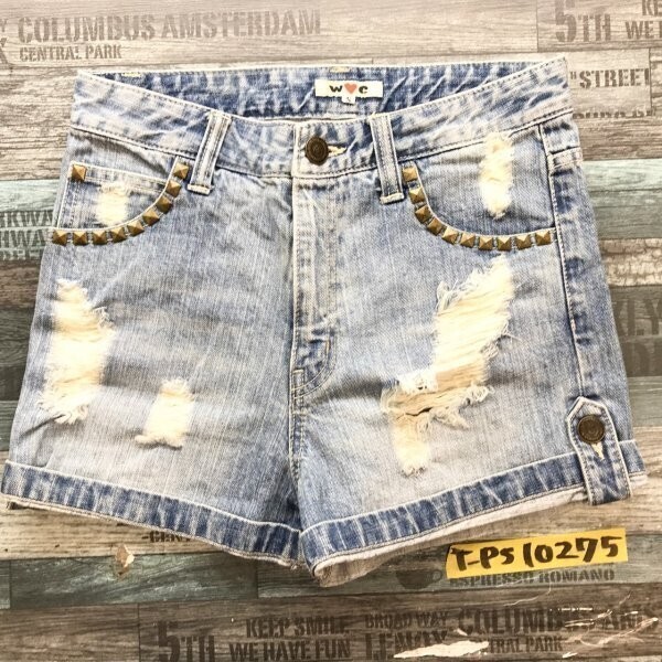 WC ダブルシー レディース スタッズ付き ダメージ加工 デニムジーンズショートパンツ S 青 です。