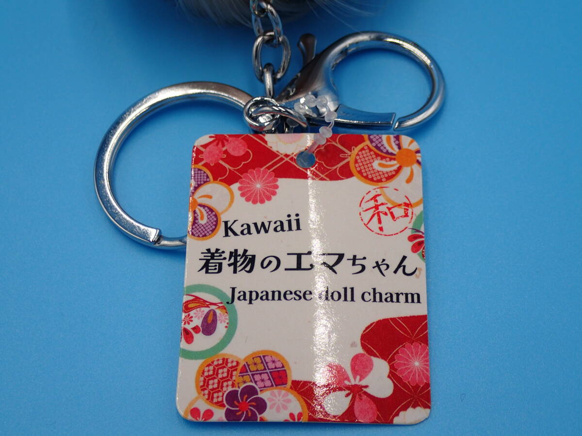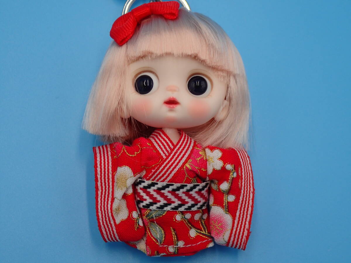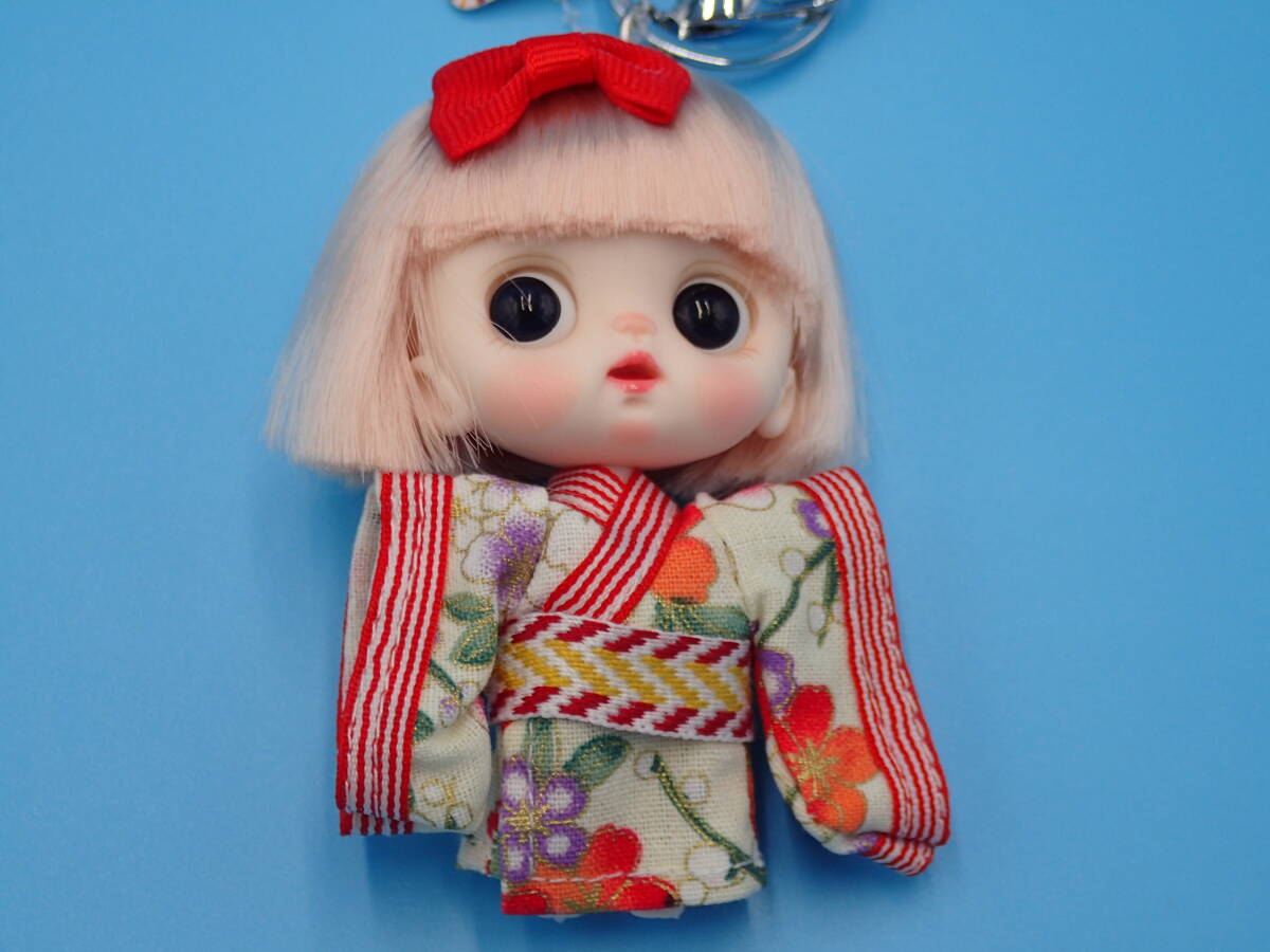 Kawaii着物のエマちゃん キャラクタードールキーホルダー&リング付 6種セット ピンク 紫 水色 緑 ショッキングピンク 赤 90x55x36mm