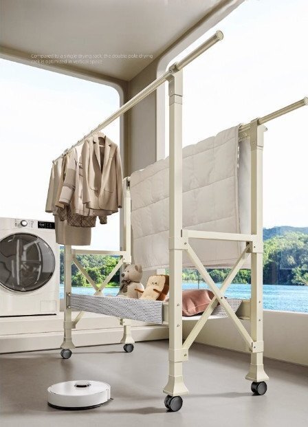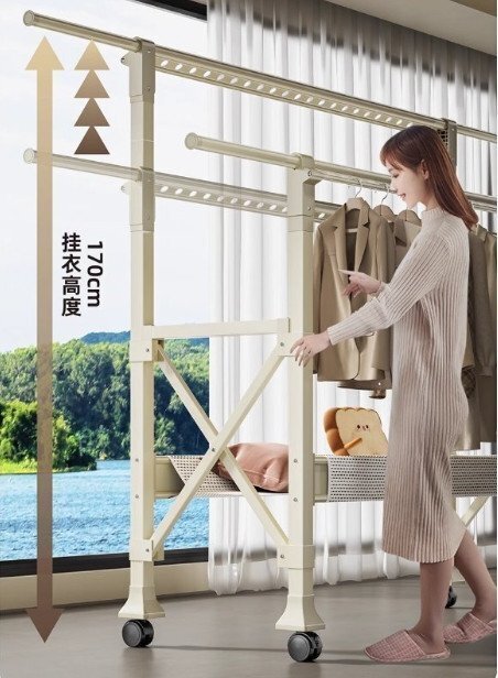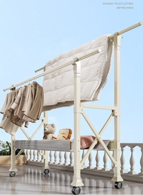 室内用アルミ合金伸縮式折りたたみ洗濯物干しスタンド、ベランダ・屋外用晒し布団干し神器