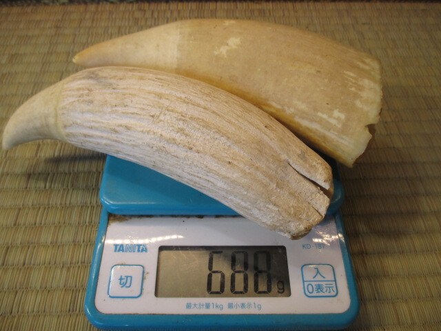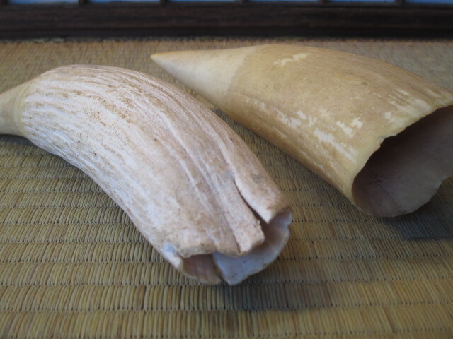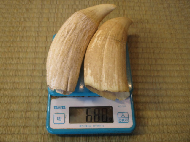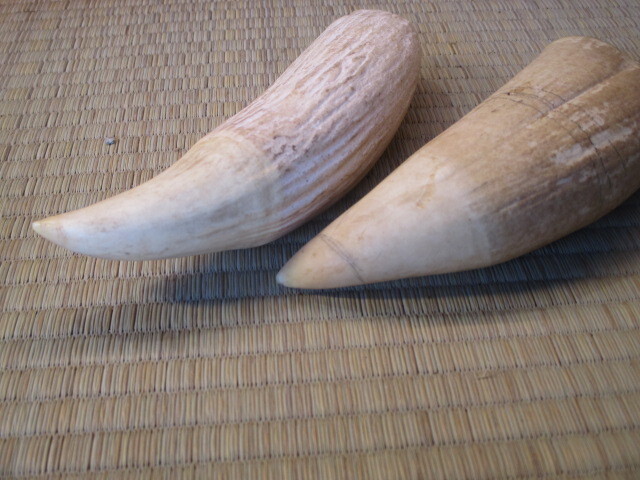 《和》マッコウクジラの歯2点セット 688g 鯨歯 鯨牙 彫刻材料 印材 天然素材