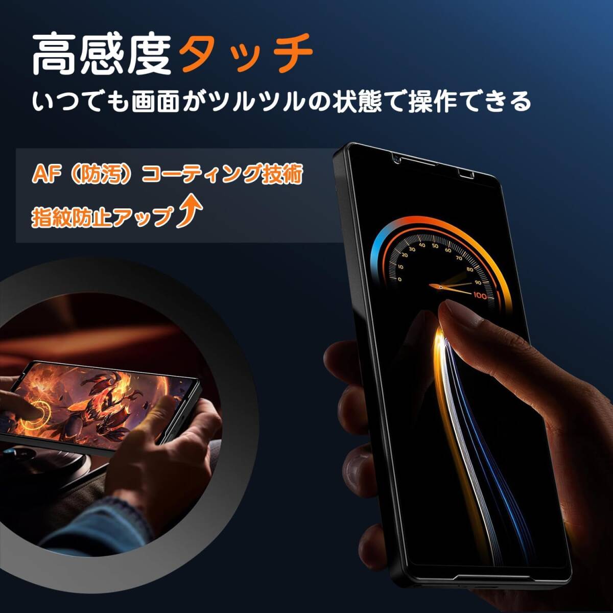 • 【高感度タッチ】 エクスペリア 10 VII フィルムはAF(防汚)コーティング技術を導入して、指紋や汚れなど付きにくく、皮脂や化粧品が付着しても軽くひと拭けばすぐに綺麗になり、常に鮮烈な視覚体験や極上な使用体験をお楽しみいただけます。高感度で素早いタッチ反応があり、スムーズな指滑りを実現。年に100,000人以上の日本お客様から絶賛をいただいています。