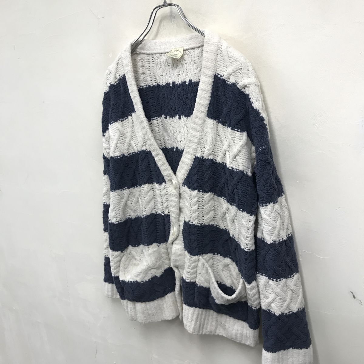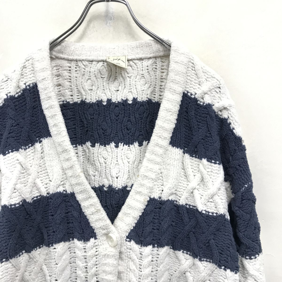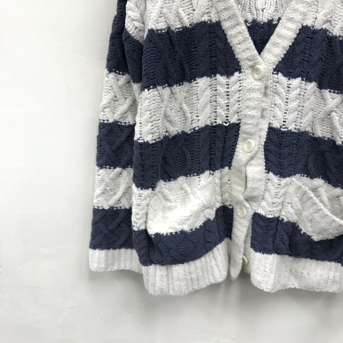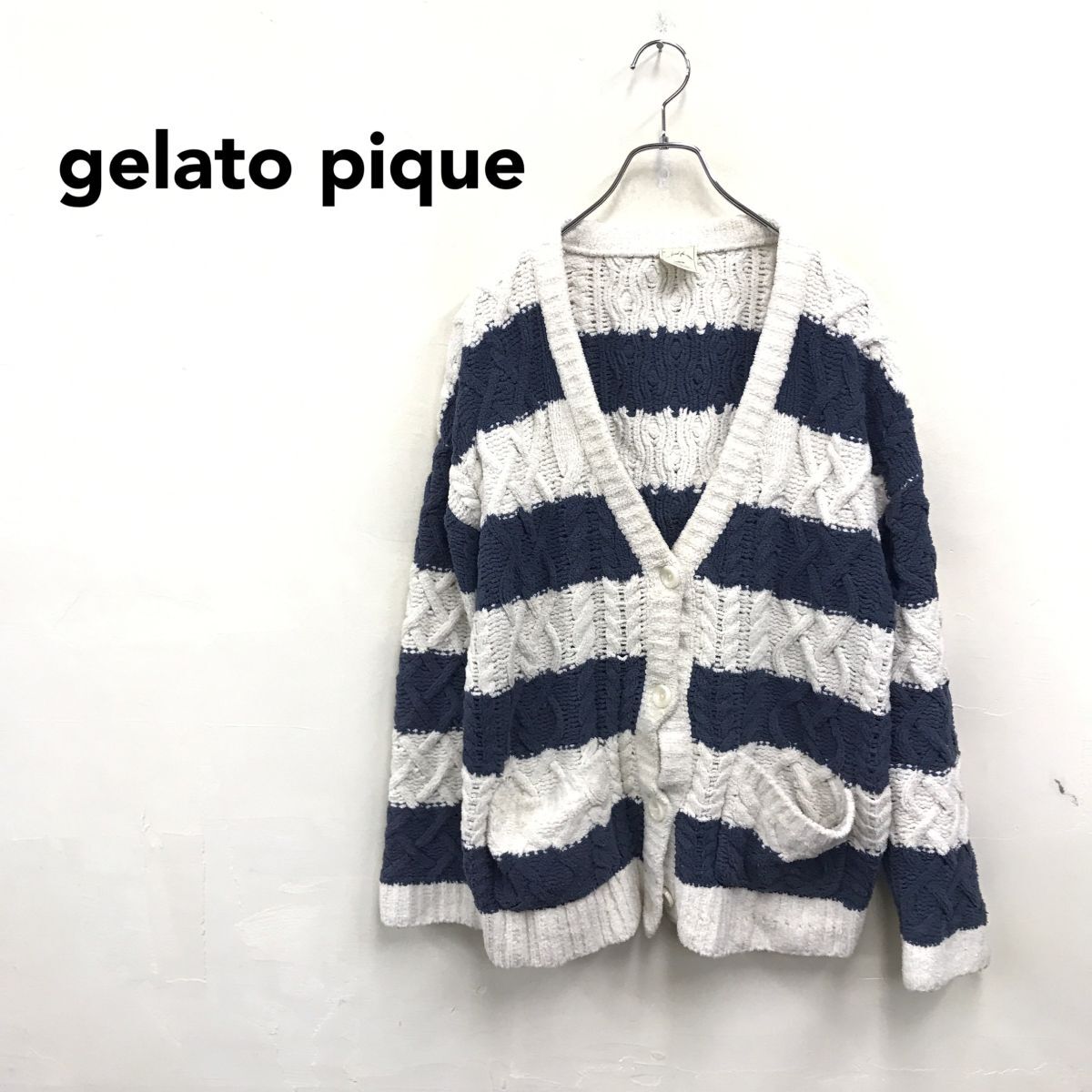2O3405-O◆gelart pique ジェラートピケ アラン編 ニットカーディガン ボーダー◆sizeF ブルー ホワイト ポリエステル