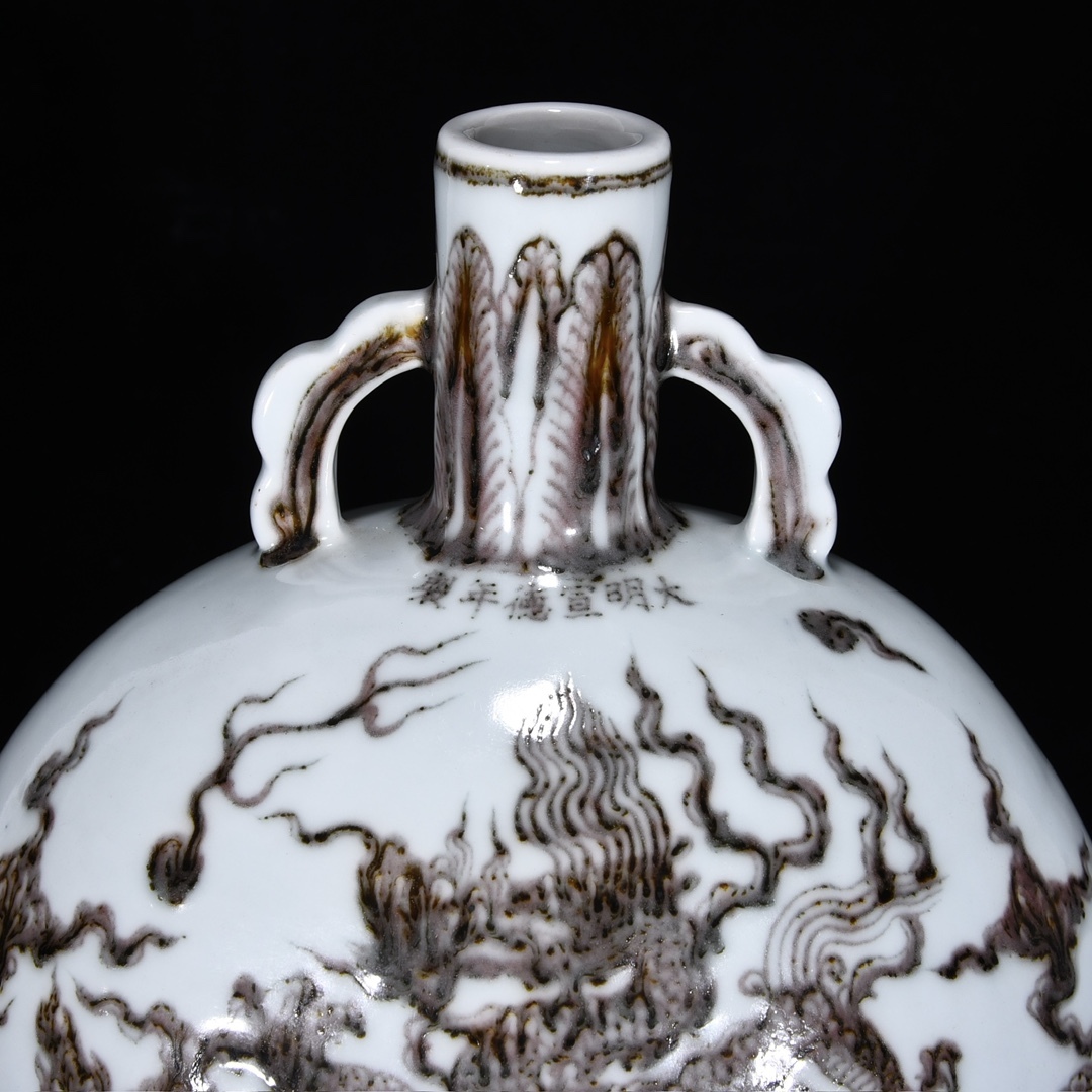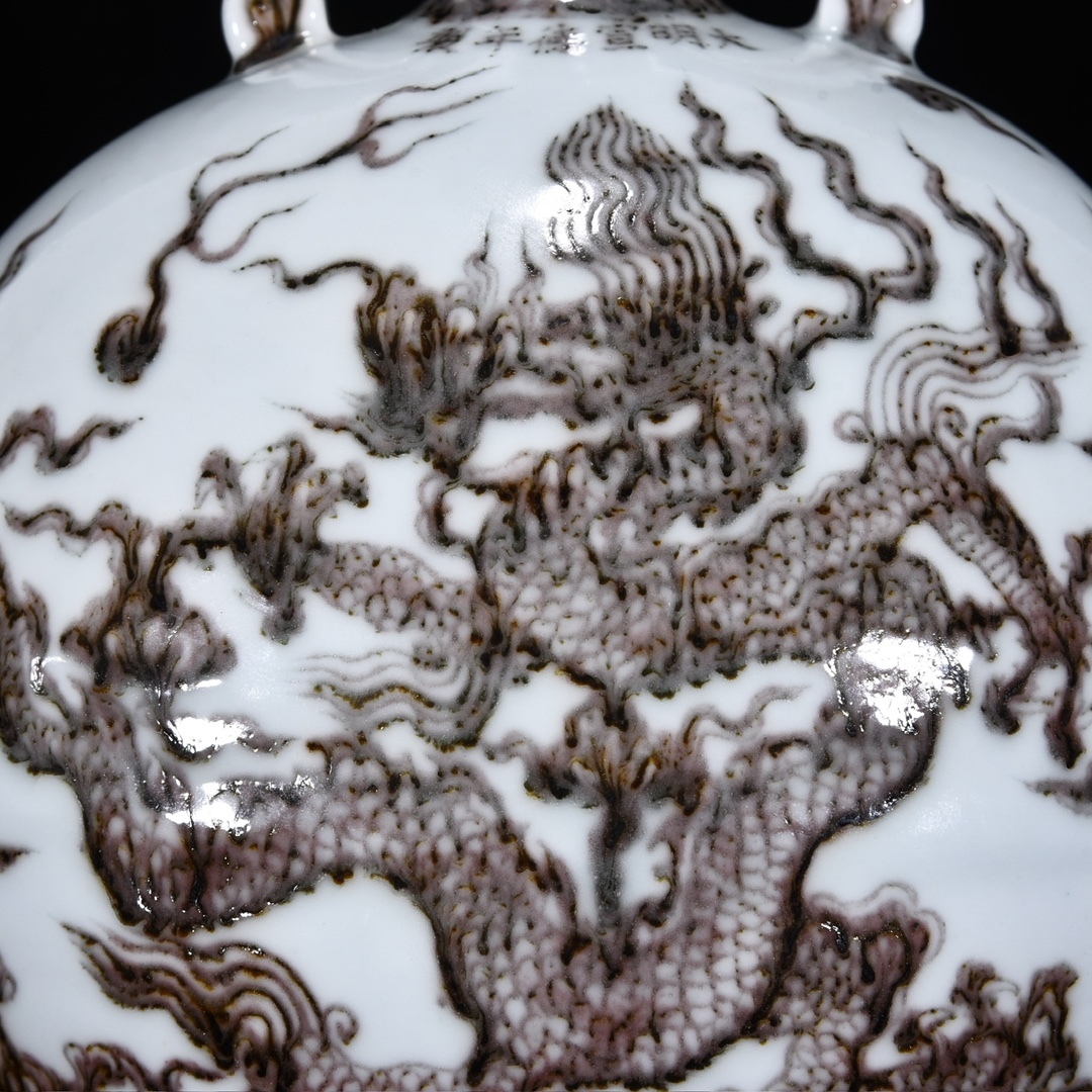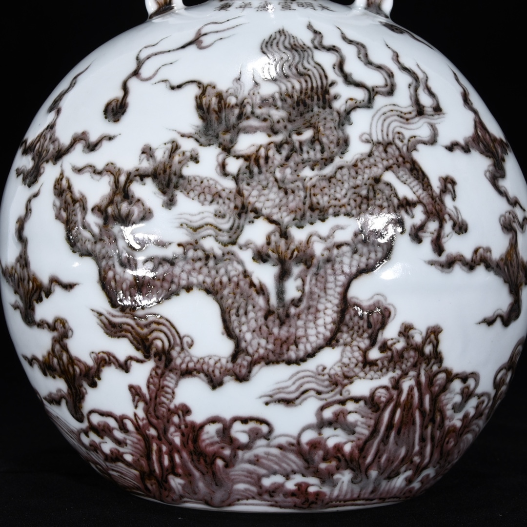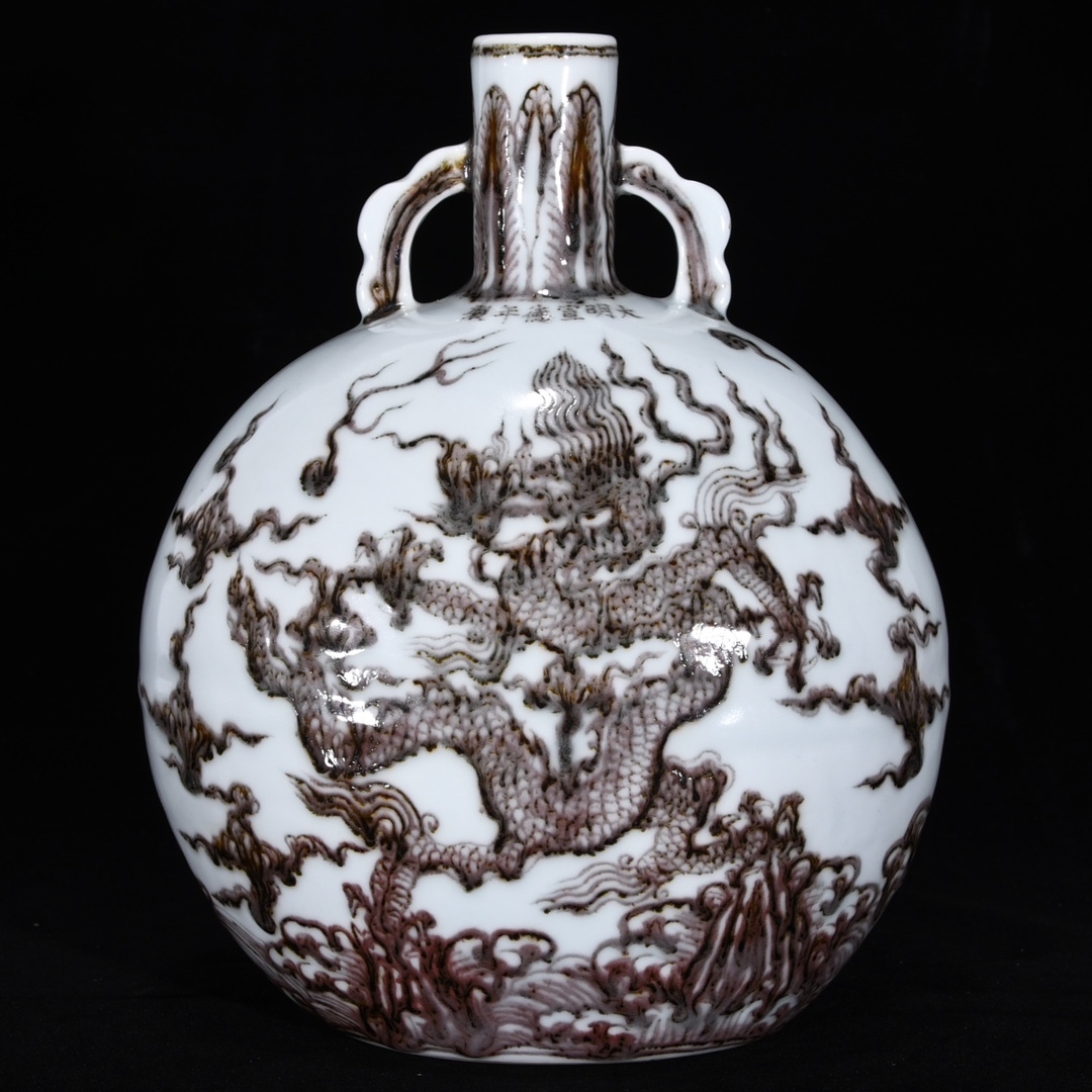 唐物 明 宣徳年製 釉裡紅龍紋 抱月瓶 陶芸 古陶磁器 中国磁器 極細工 中国古玩 骨董品 古美味 D611