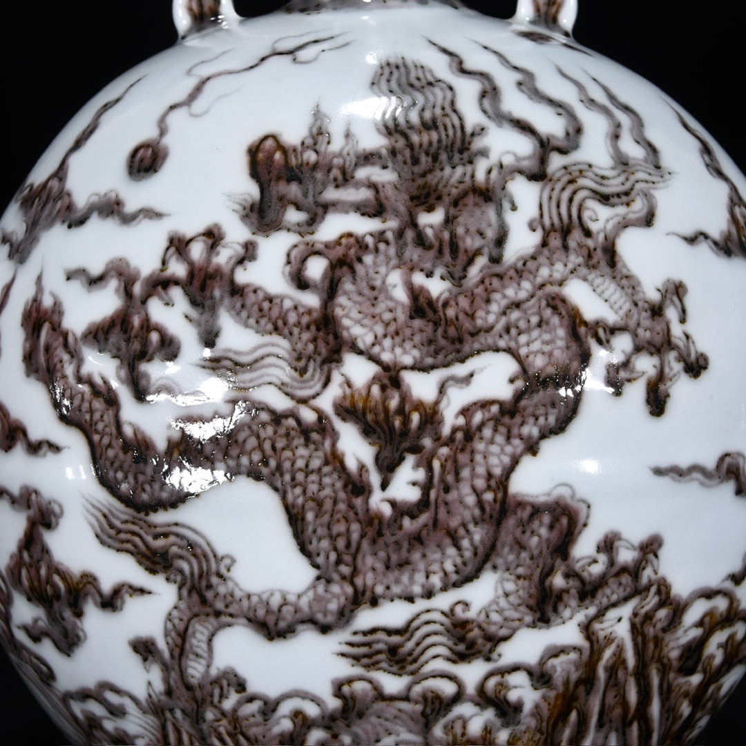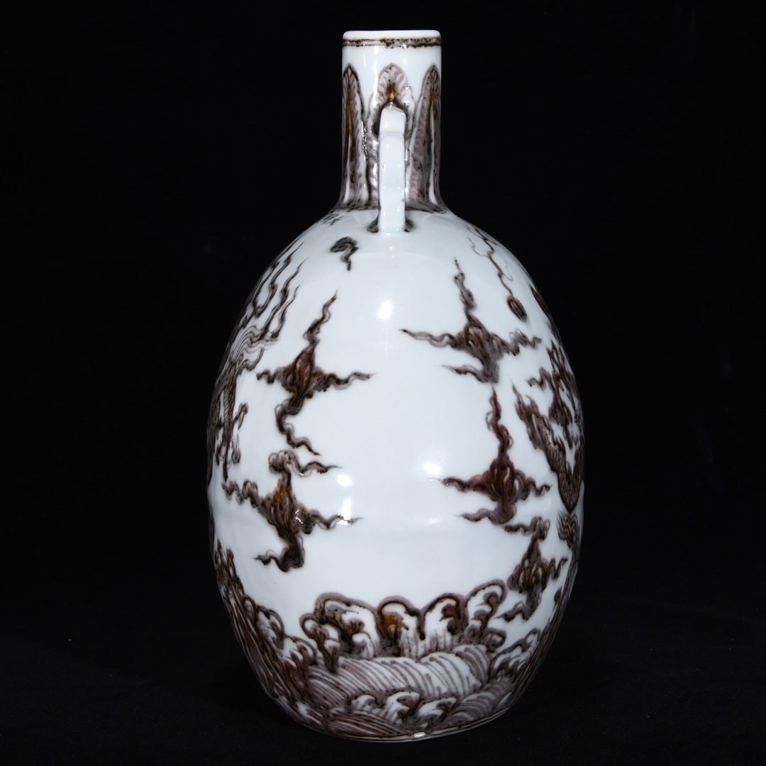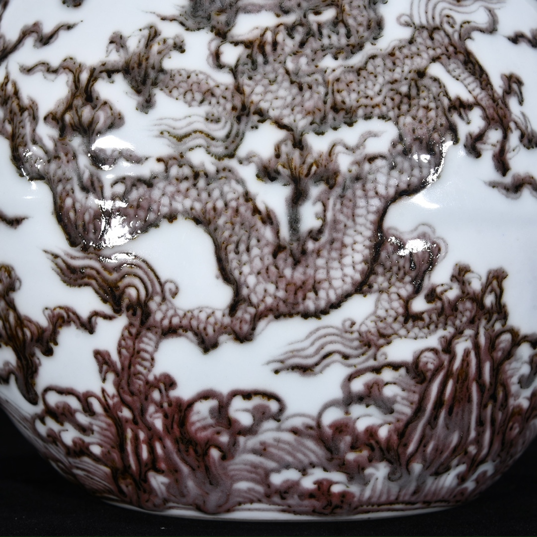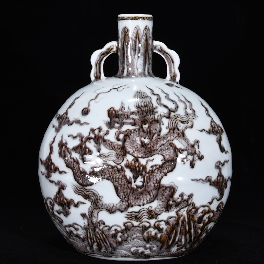 唐物 明 宣徳年製 釉裡紅龍紋 抱月瓶 陶芸 古陶磁器 中国磁器 極細工 中国古玩 骨董品 古美味 D611