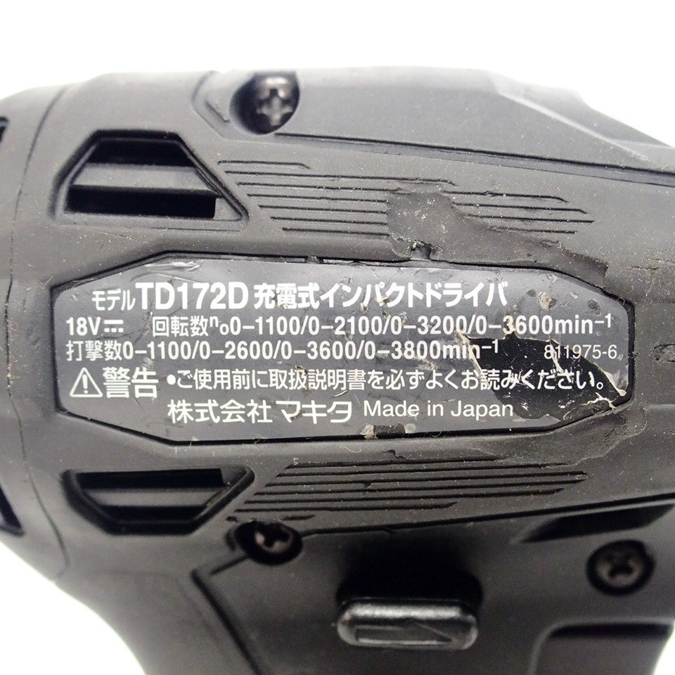 f002 KAI makita マキタ 充電式インパクトドライバ TD172D 18V 本体 バッテリBL1860B×2本 充電器 ケース付 電動工具 動作確認済み