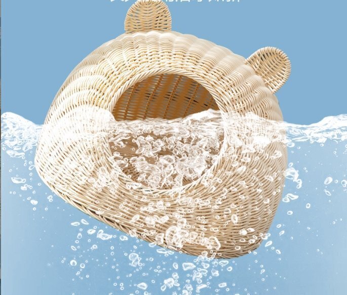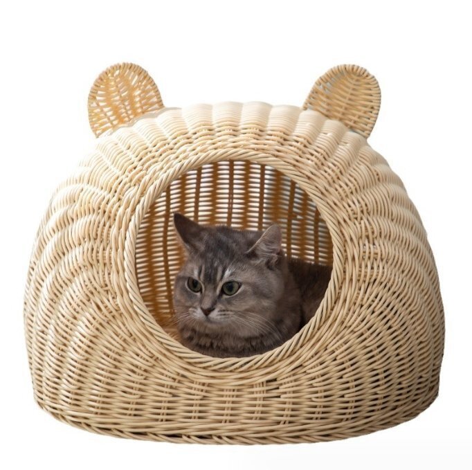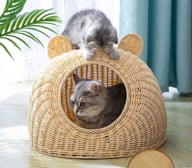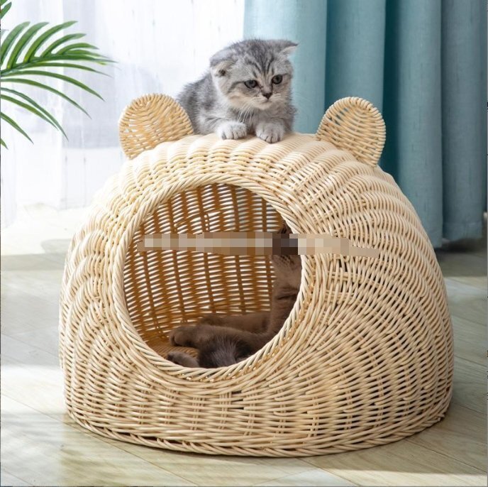 籐編み猫小屋四季通用半閉鎖式ペット小屋大猫床別荘夏猫冷窩冷却用品(50*50)は20斤以上の猫に適している