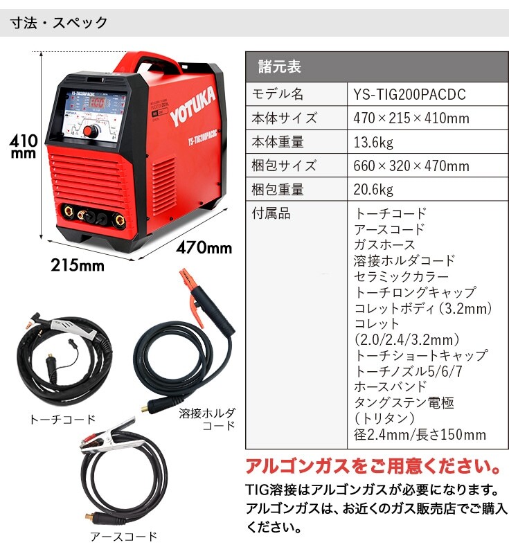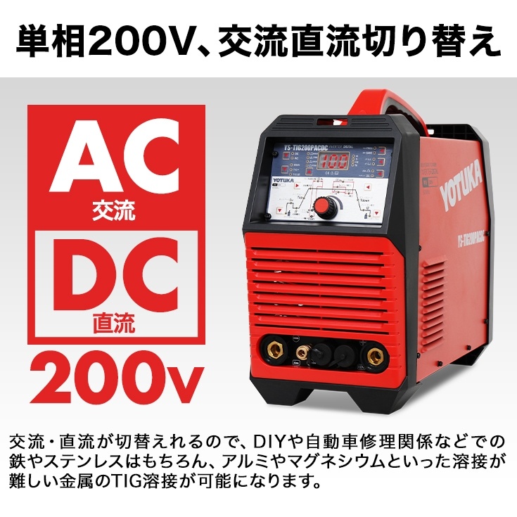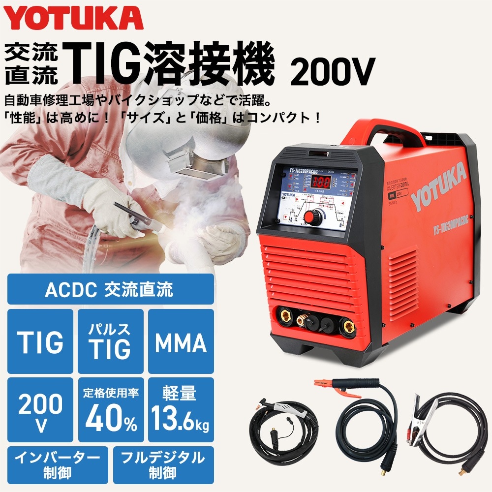 ハイガー公式 溶接機 200V TIG/MMA TIGパルス 交流/直流 インバーターフルデジタル制御 YOTUKA YS-TIG200PACDC