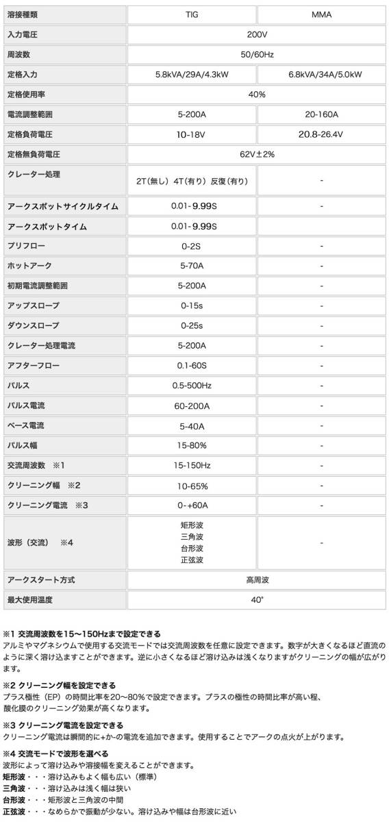 TIG溶接」「パルスTIG溶接」「MMA溶接」の3つの溶接がこれ1台で出来ます。