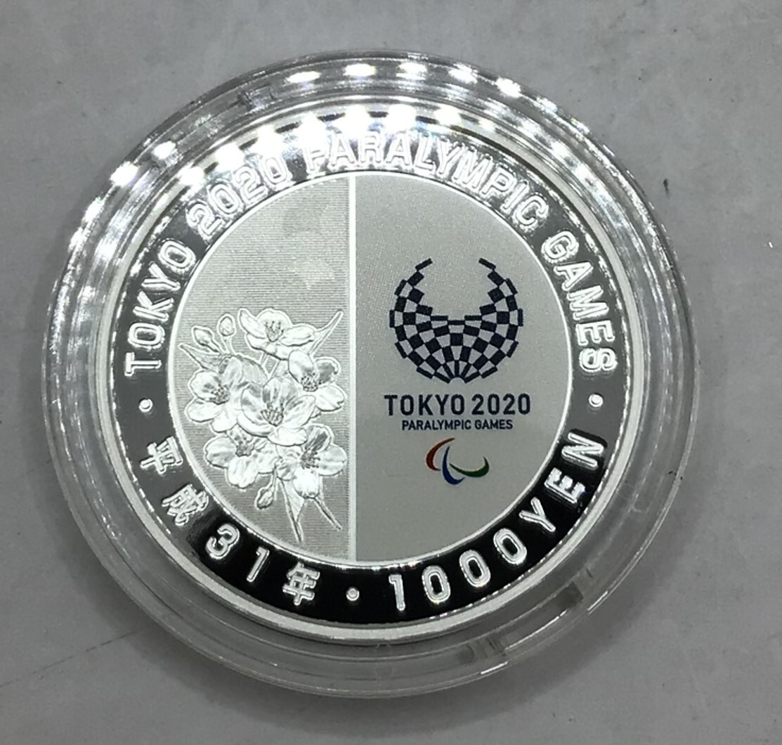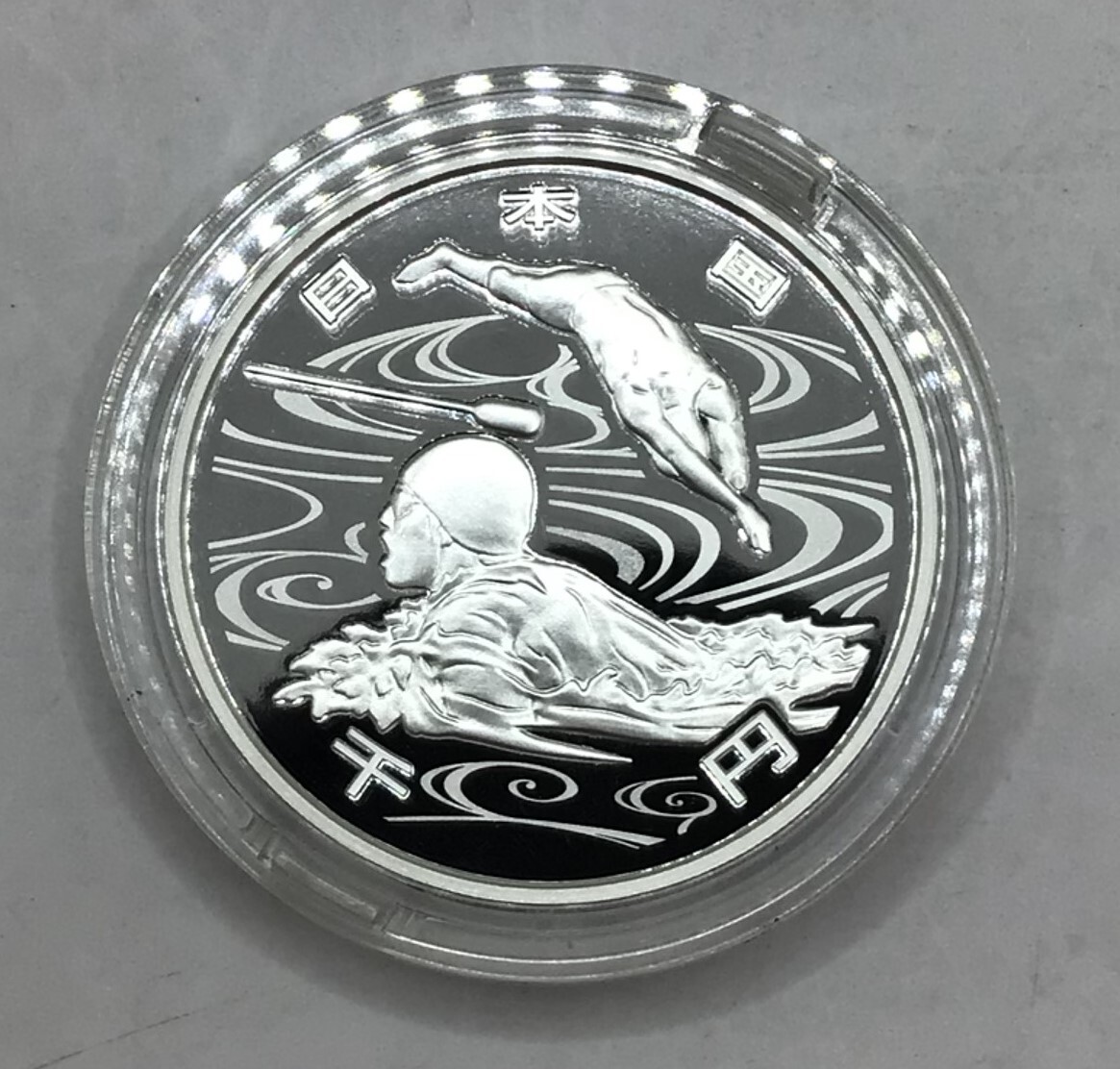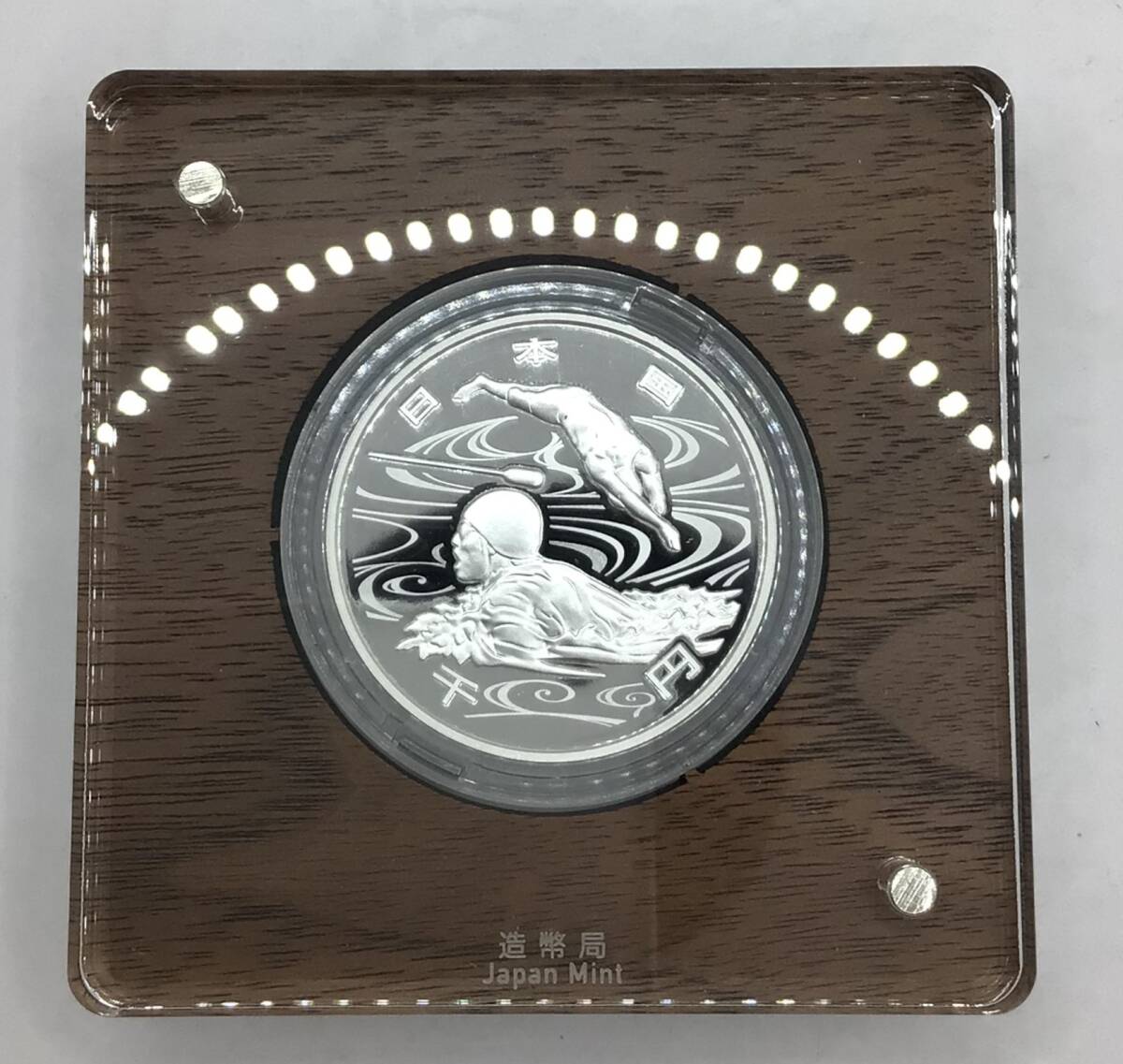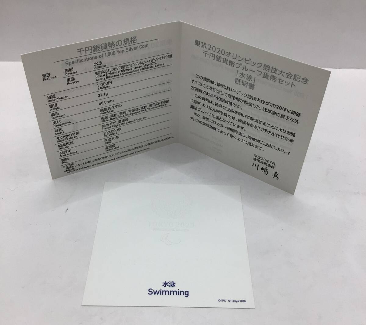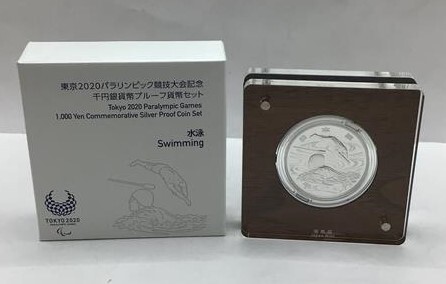 東京パラリンピック競技大会が2020年に開催されることを記念して、造幣局から「水泳」をテーマに発行した千円銀貨幣プルーフ貨幣セットの出品になります。