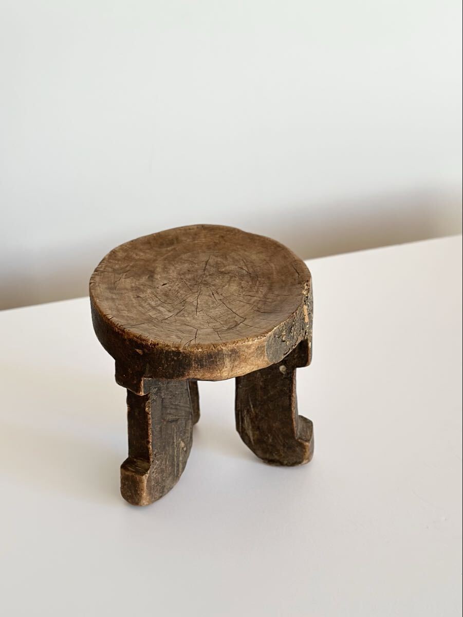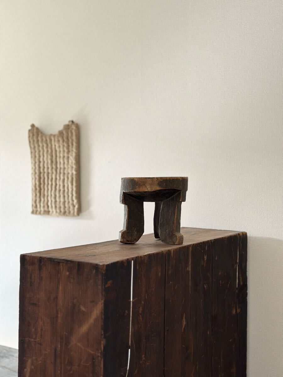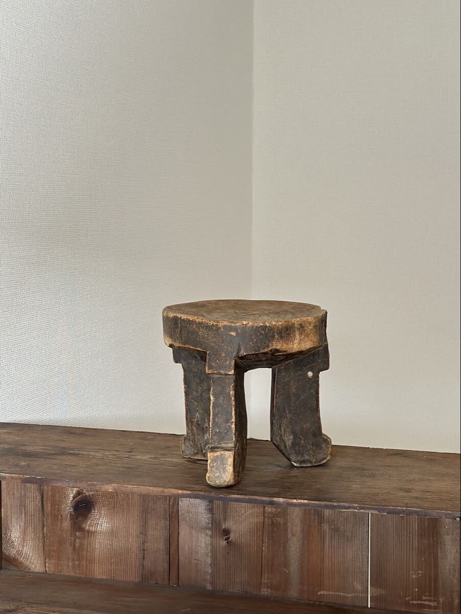 丸太を削り出した素朴で力強いスツールは、ケニアのカンバ族のもので、所載品などではないですが、古道具坂田取扱品とのことです。