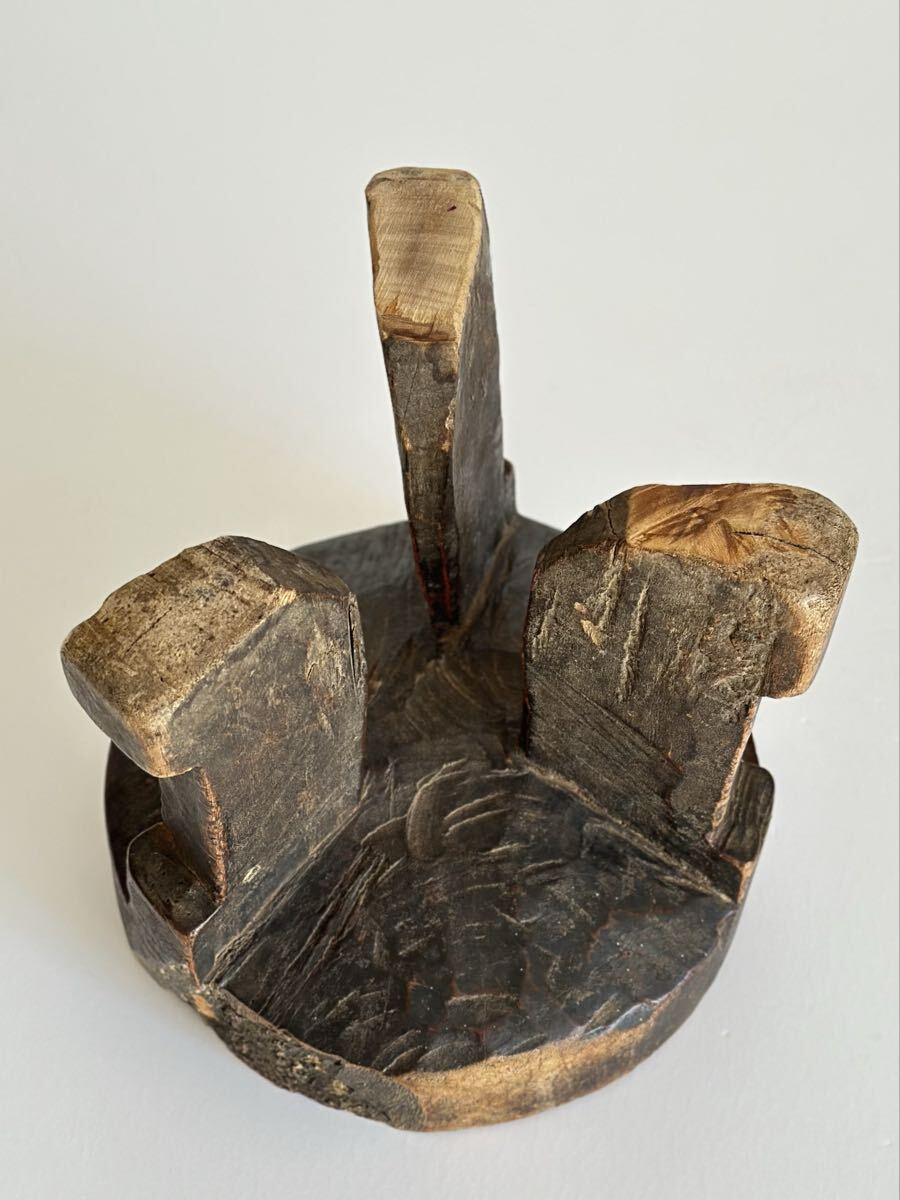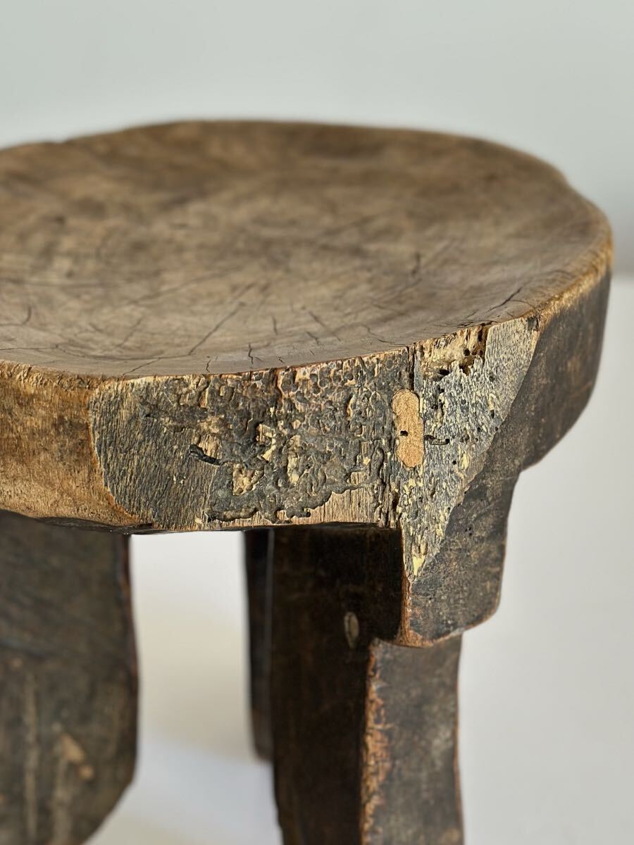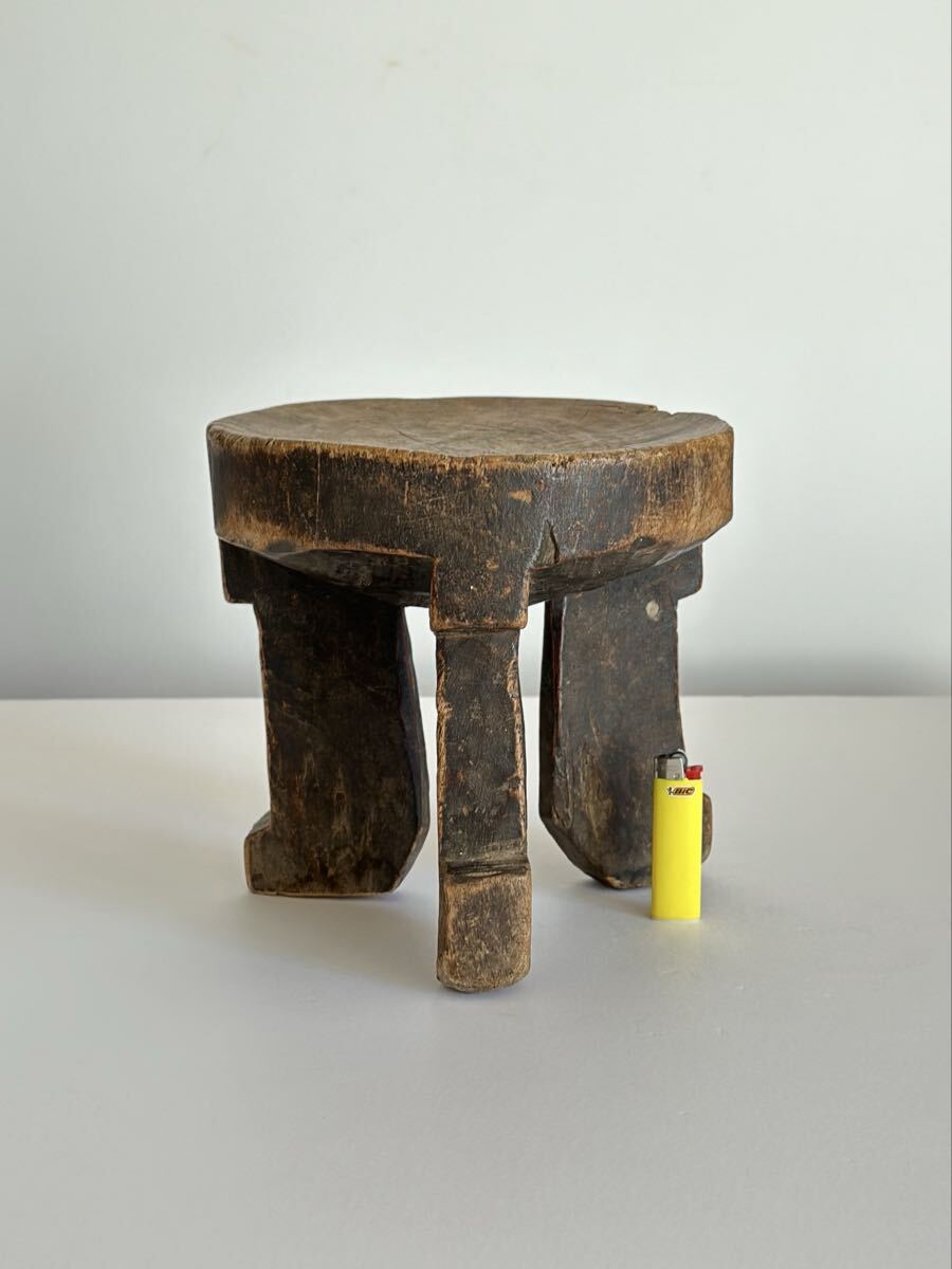 丸太を削り出した素朴で力強いスツールは、ケニアのカンバ族のもので、所載品などではないですが、古道具坂田取扱品とのことです。