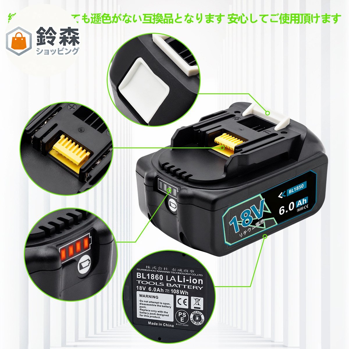 • 幅広く使われる: マキタバッテリー18v BL1850B 対応の機種:BL1860B、BL1850、BL1840、BL1830、BL1830B、BL1820B、BL1815、BL1815N など。このBL1850互換バッテリーはたっぶり6.0Ah 超高容量入っており、頻繁に充電する必要ないです