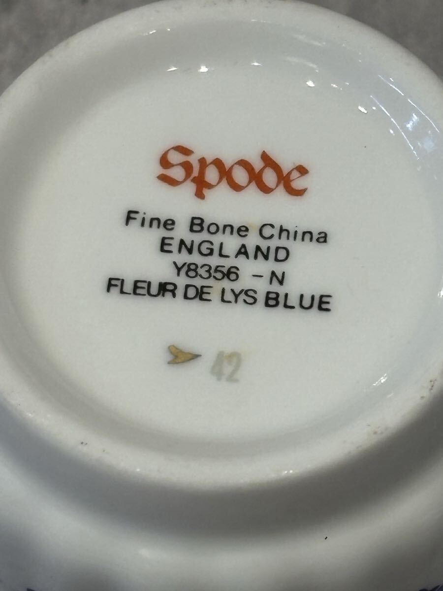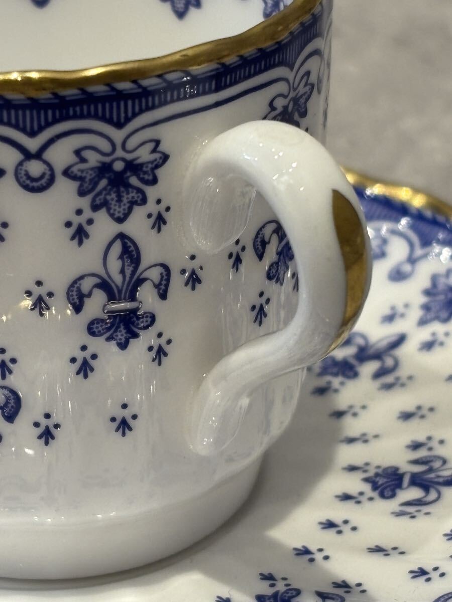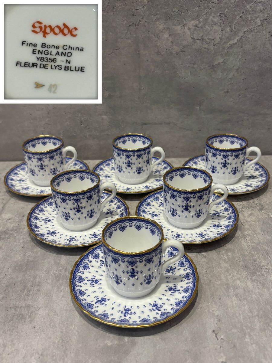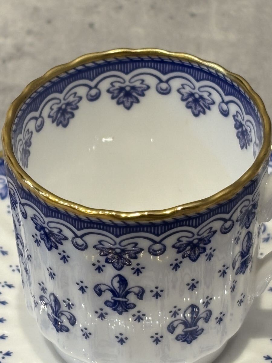 ◇トレモ◇Spode 【スポード/Fleur de Lys Blue/フルールドリスブルー】 デミタスカップ 王家紋章モチーフ 金彩 コバルトブルー セット売り