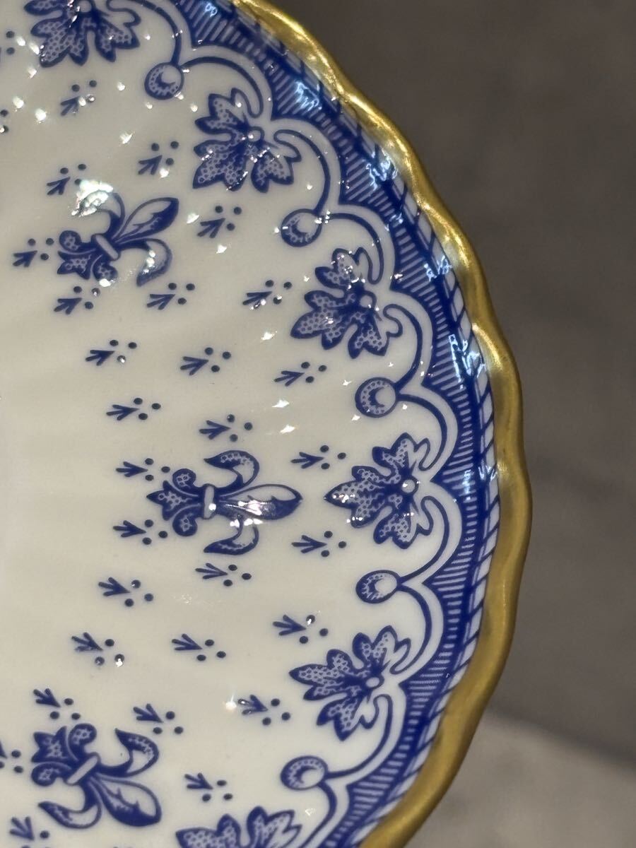 王家の象徴である ユリの紋章(Fleur de Lys) をモチーフにした、繊細で美しいコバルトブルーの絵柄が印象的。