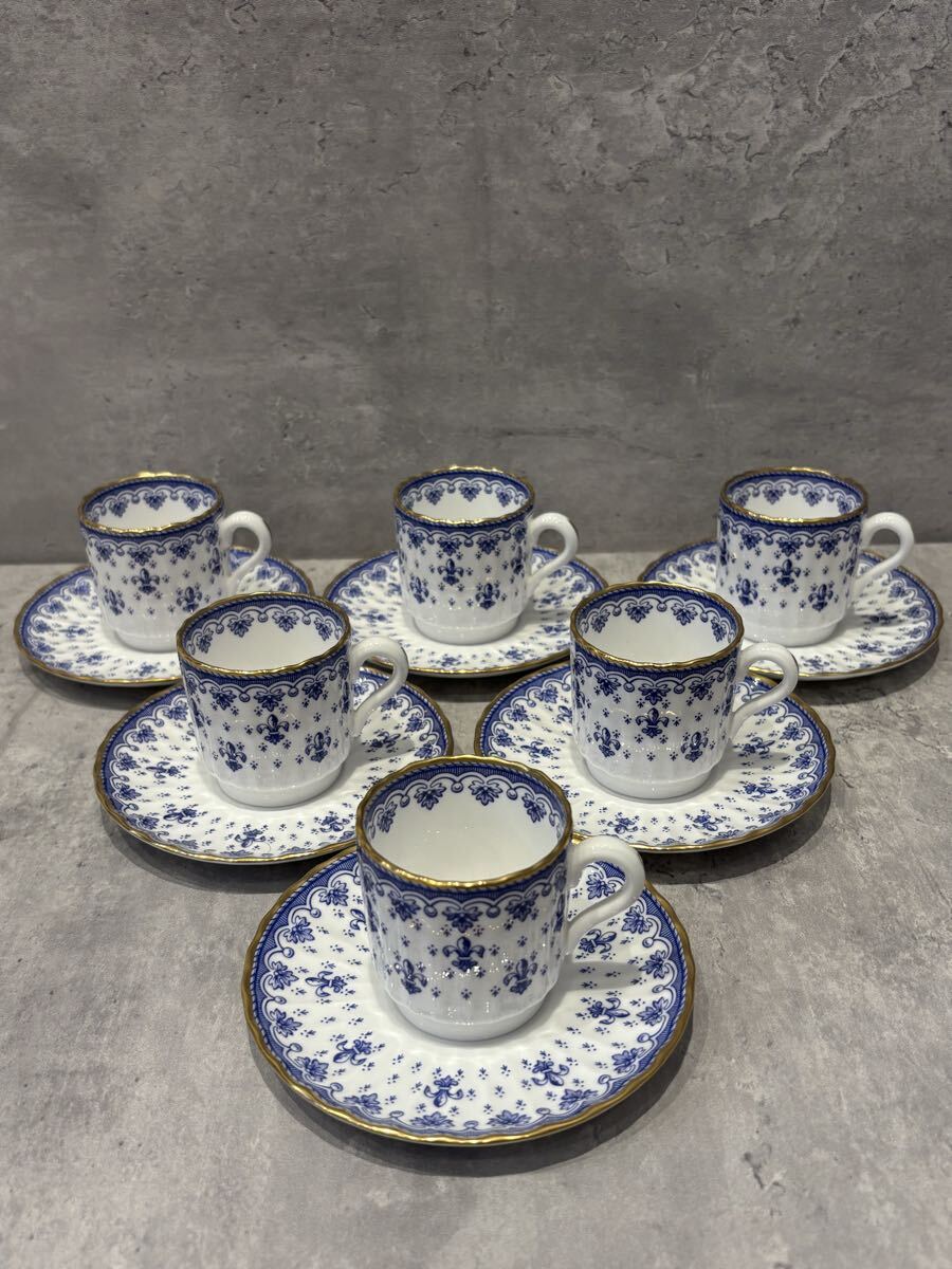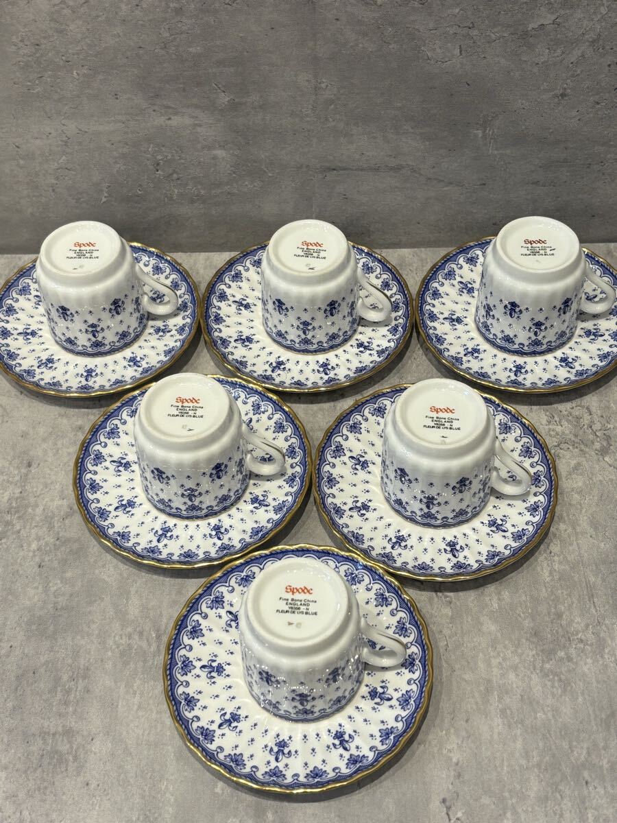 イギリスの名窯 Spode(スポード) による、上品でクラシカルなシリーズ 「Fleur de Lys Blue(フルールドリス ブルー)」 のエスプレッソカップ&ソーサー6客セットです。