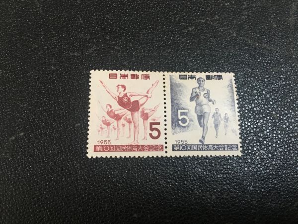 1596 未使用切手 国体切手 ロードレース・マスゲーム 1955.10.30.発行 記念切手 日本切手 郵便切手 人物切手 即決切手