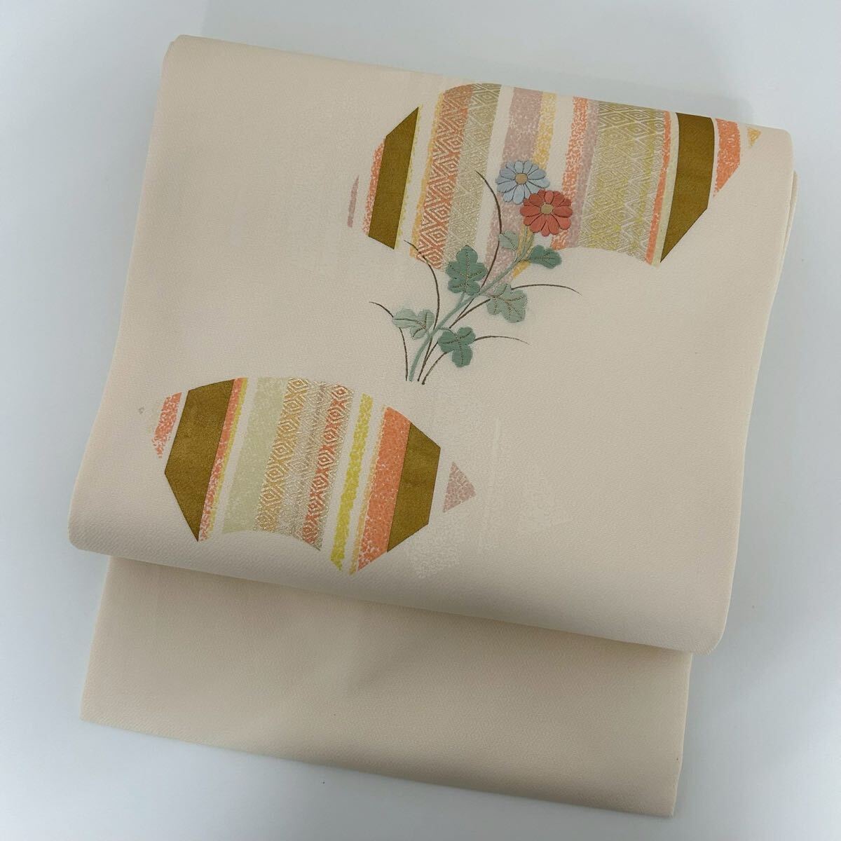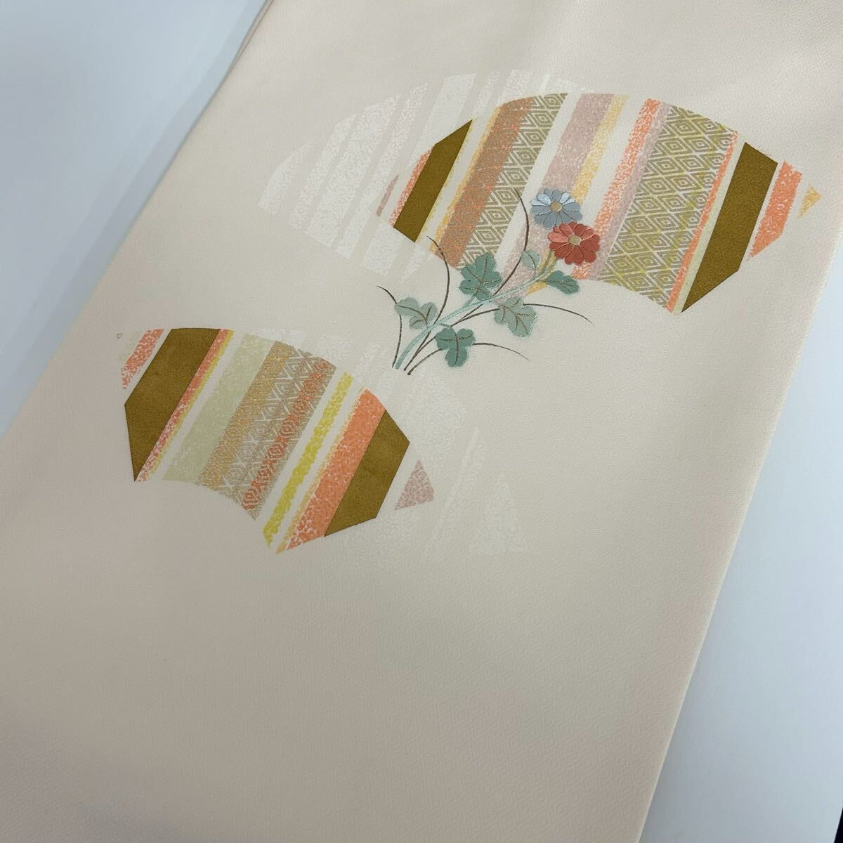 【楓】美しい刺繍 名古屋帯 正絹 花 九寸 KK-1247