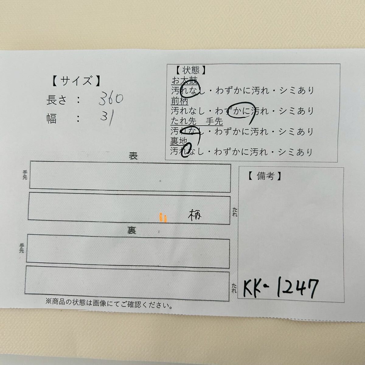 画像内に検品表を掲載しております。