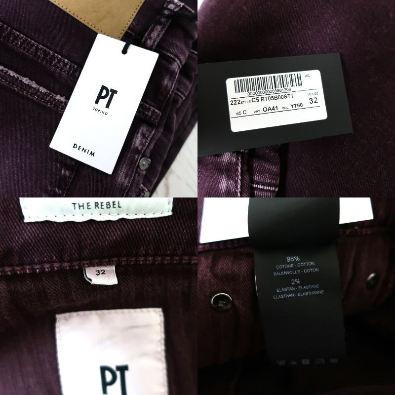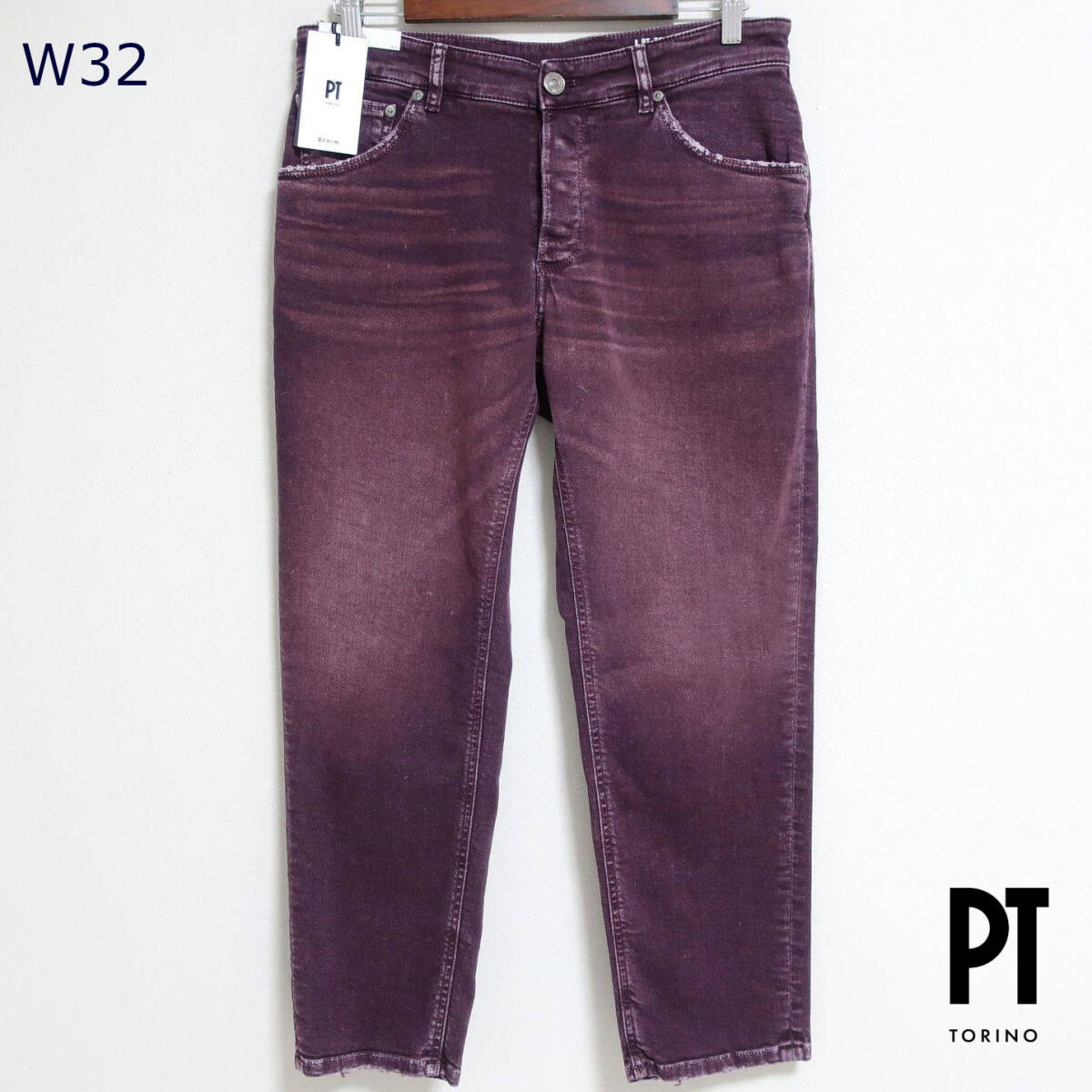 新品 未使用 PT TORINO ジーンズ REBEL デニム テーパード アンクル丈 クロップド バーガンディ ボルドー ワイン メンズ W32 Lサイズ