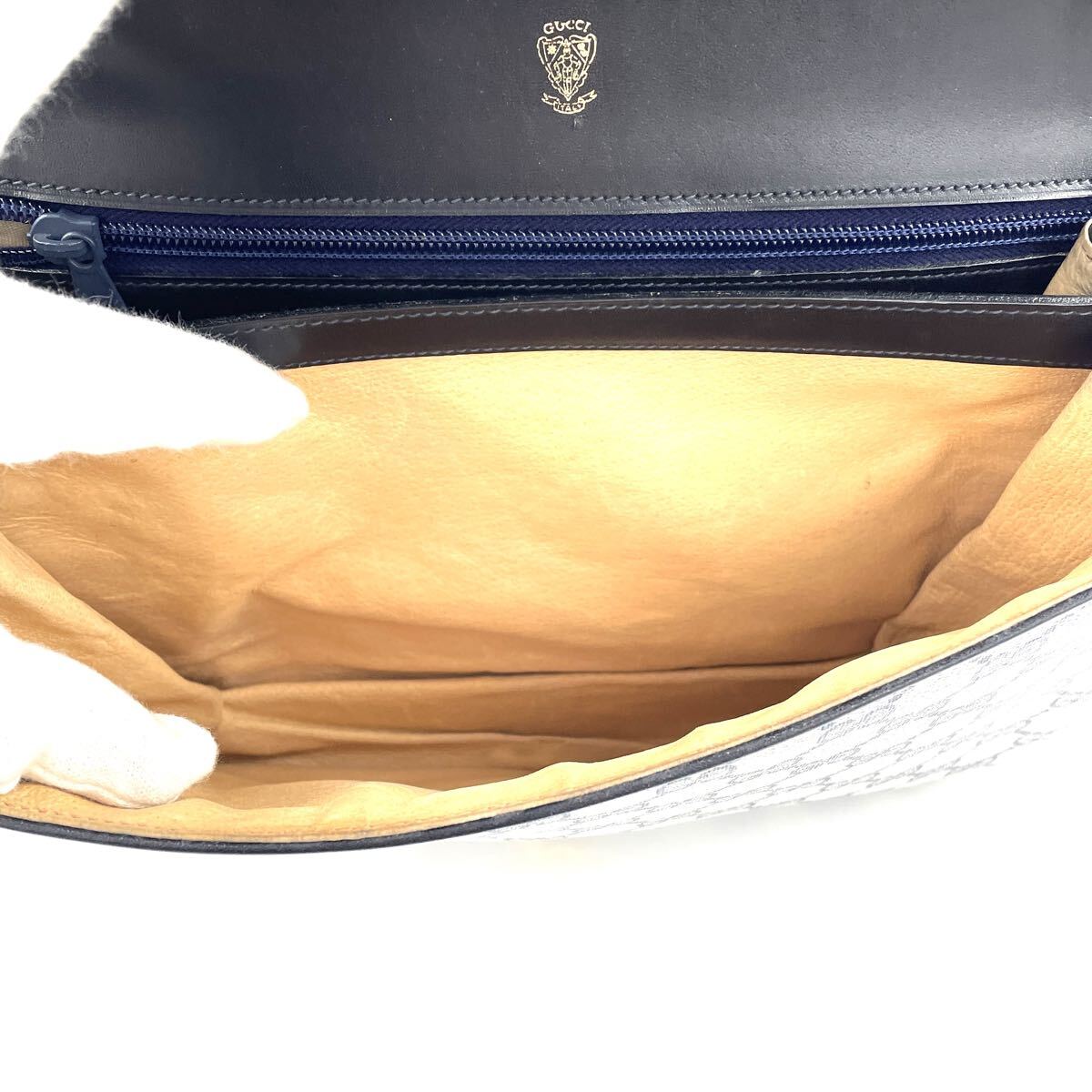 ご覧いただきありがとうございます。 管理番号 : KO79642063 ブランド : GUCCI ライン : オールドグッチ 型番 : - シリアルナンバー : - カラー : ネイビー 素材 : PVC×レザー サイズ : W30cm×H25cm×D4cm 開閉 : プッシュロック ストラップ長さ : 約48〜78cm 収納部 : 2箇所 ポケット(内側) : 1箇所 付属品 : なし 状態ランク:外側Aランク、内側Aランク 本体外側・・・角擦れ微弱、表面擦れ微弱、使用感極少 本体内側・・・べたつき・剥がれなし、目立つ傷・汚れなし、使用感極少 ストラップ・・・ヒビ割れ/切れなし、根元裂けなし、使用感極少 若干の擦れや使用感はありますが全体的にとても綺麗な状態です。 |