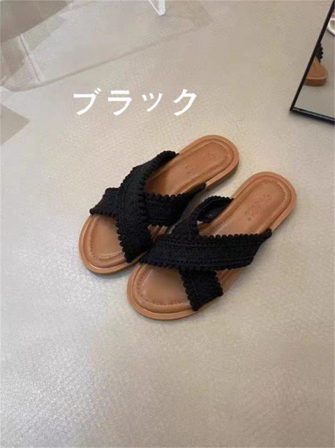 サンダル シンプル カジュアル ローマビーチシューズ 歩きやすい レディースシューズ 【35】22.5cm ブラック