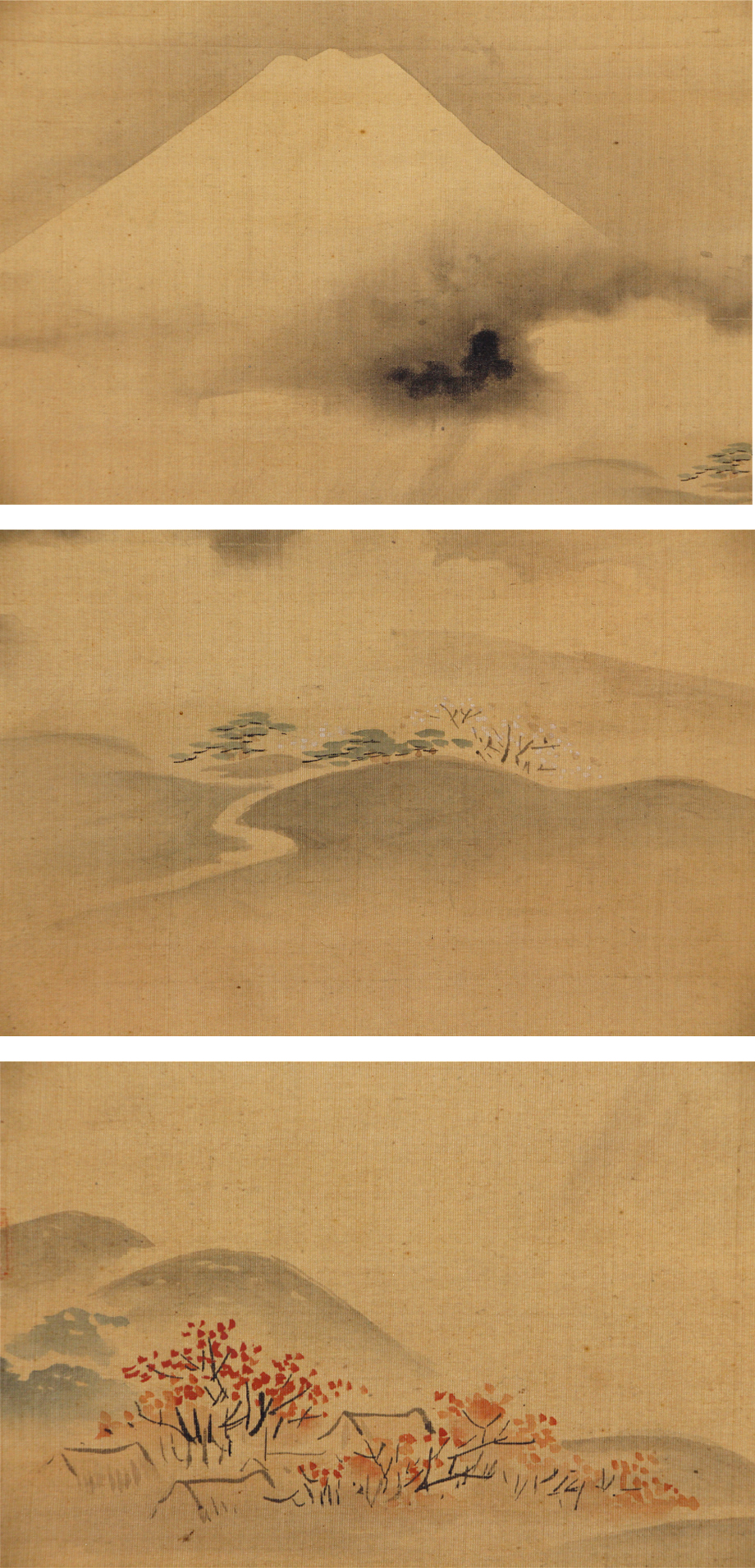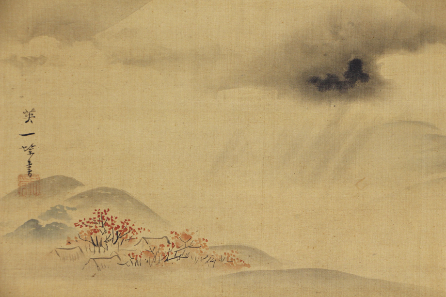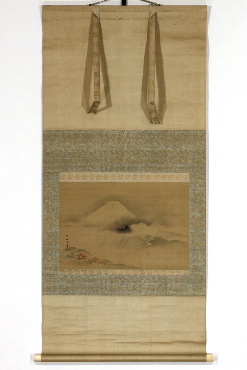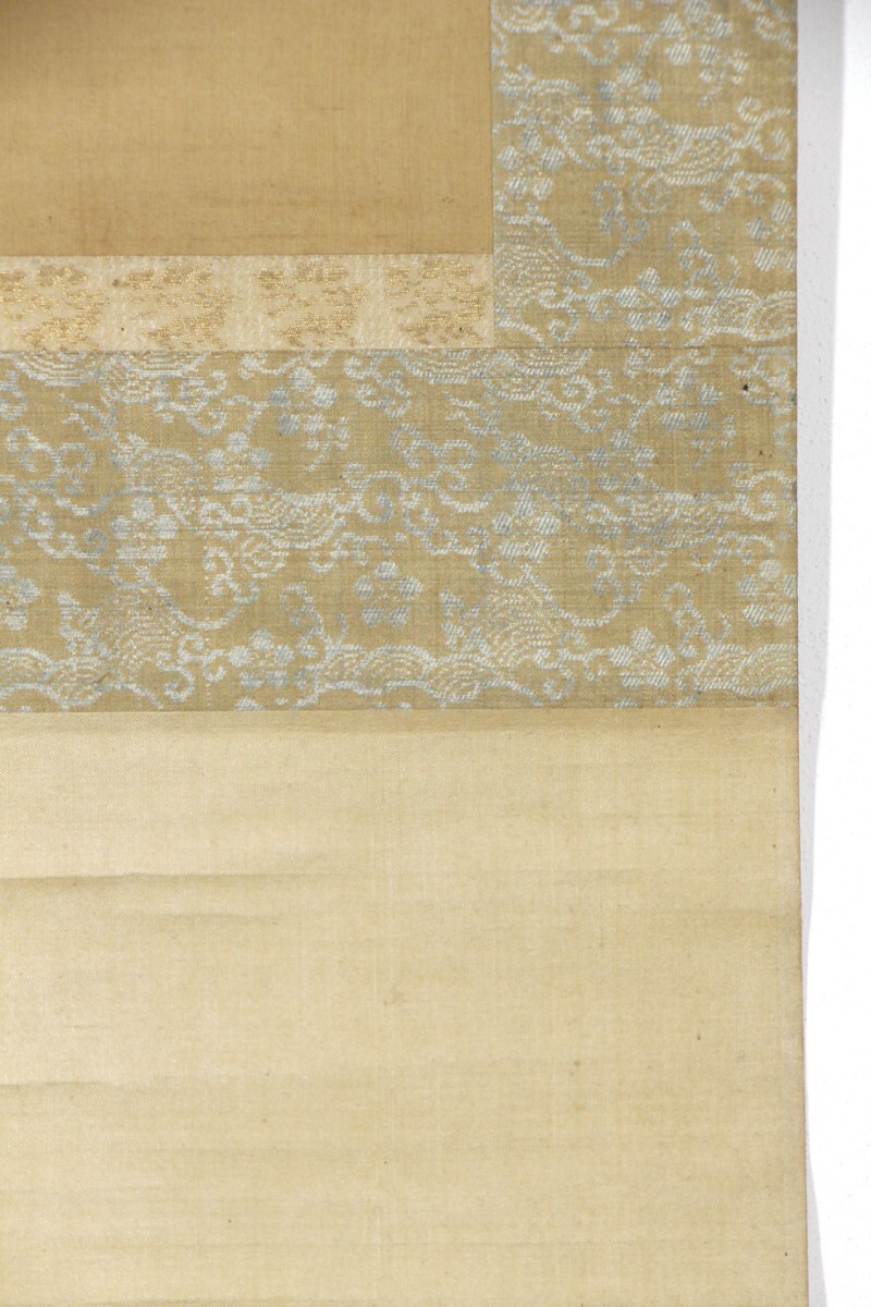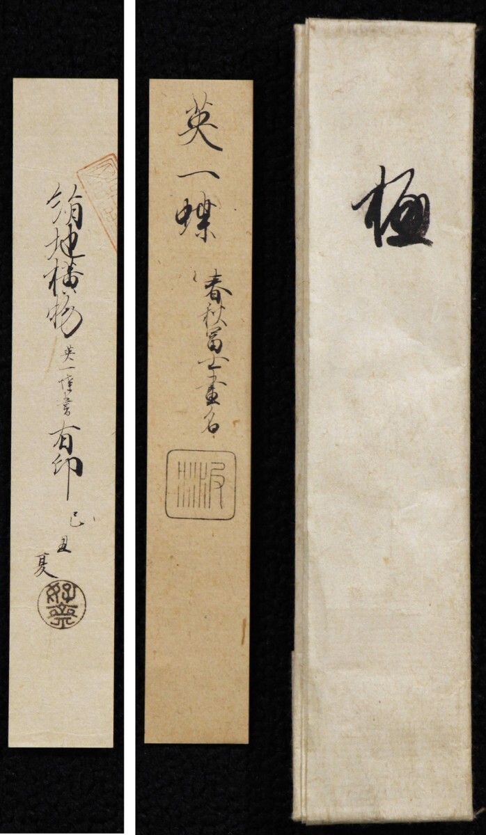 総丈サイズ…横 52 × 縦 112.5 cm 絹本着色・箱入 大倉好斎極 状態…表具少オレ 箱少傷ミ 【印刷ではありません】 【真作】 英一蝶 江戸中期の絵師。京都生。名は信香。剃髪後に多賀朝湖と名乗る。字は駿、通称を助之進、号に朝湖・牛麿・翠蓑翁等。名を英一蝶、画号を北窓翁に改めたのは晩年、流罪を赦されて江戸に帰ってから。寛文6年頃に一家で江戸へ移り、周囲に絵描きとしての才能を認められて狩野安信に学ぶがのち破門。その一方、暁雲の号で俳諧師としても名高く、宝井其角、松尾芭蕉らと交友を持った。その後は入牢、三宅島配流と二度の憂き目に遭いながらも江戸に帰還。人気絵師として数々の大作を手がけた。享保9年(1724)歿、71歳。 大倉好斎 江戸後期の古筆鑑定家。京都生。大倉汲水の長男。姓は菅原、名は信古、号に古昔園。紀州徳川家に仕えた。嘉永4年(1851)法橋に叙せられる。文久2年(1863)歿、68歳。 |