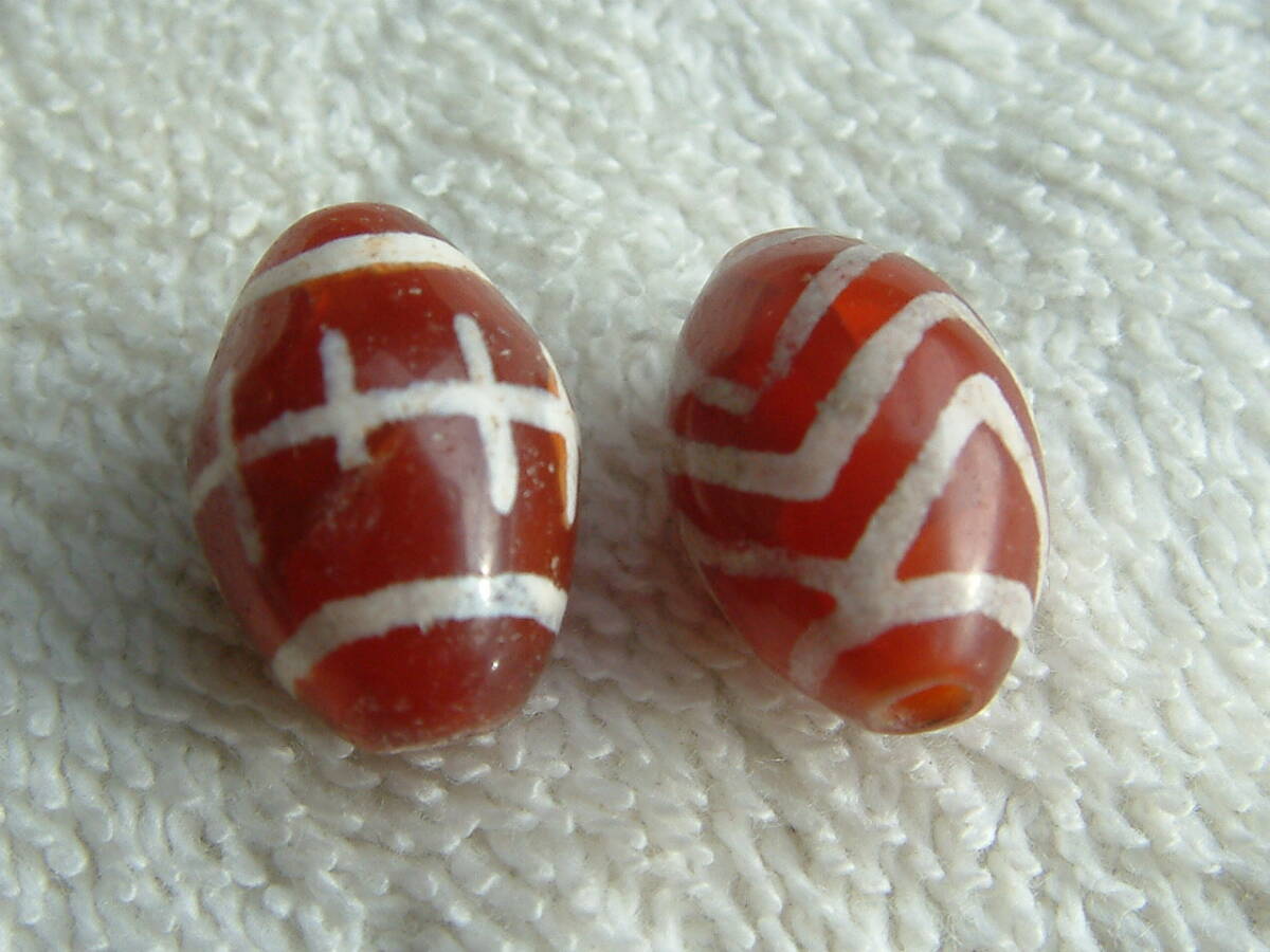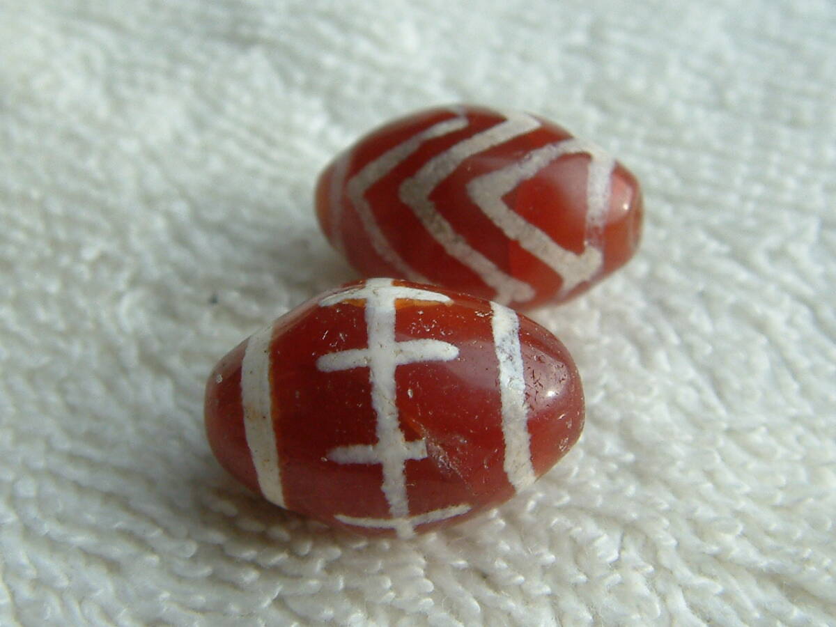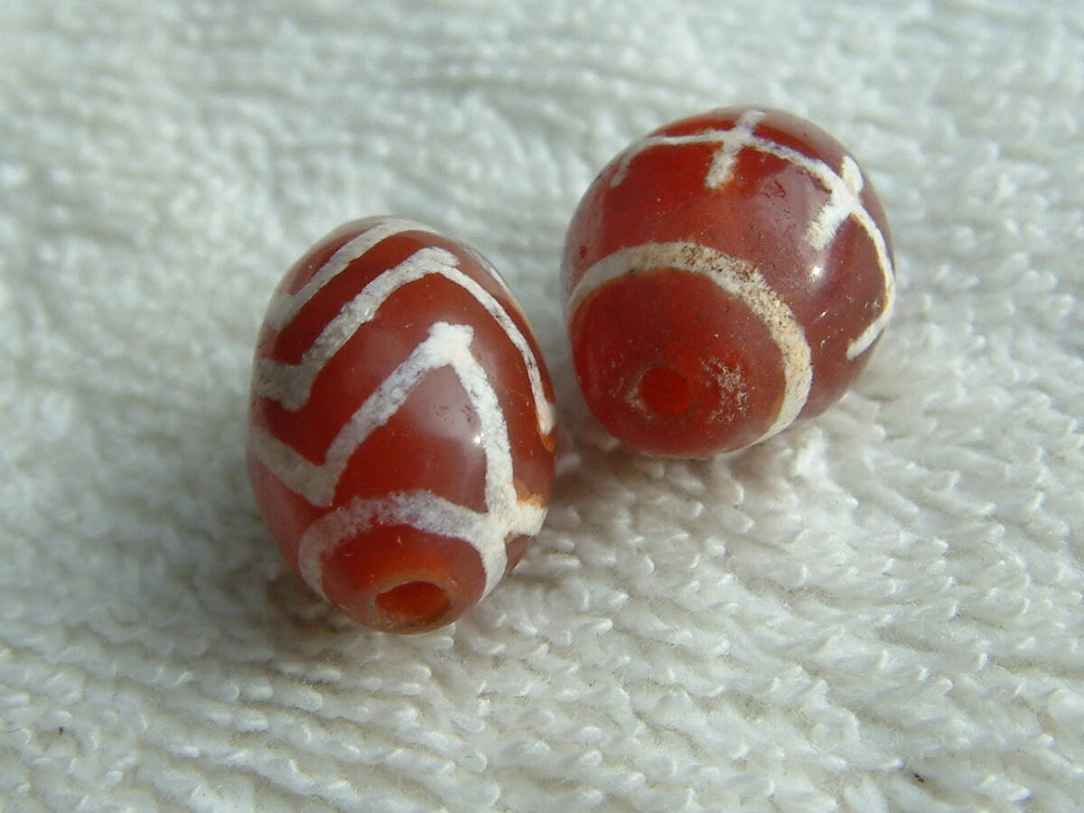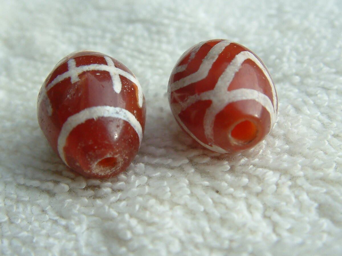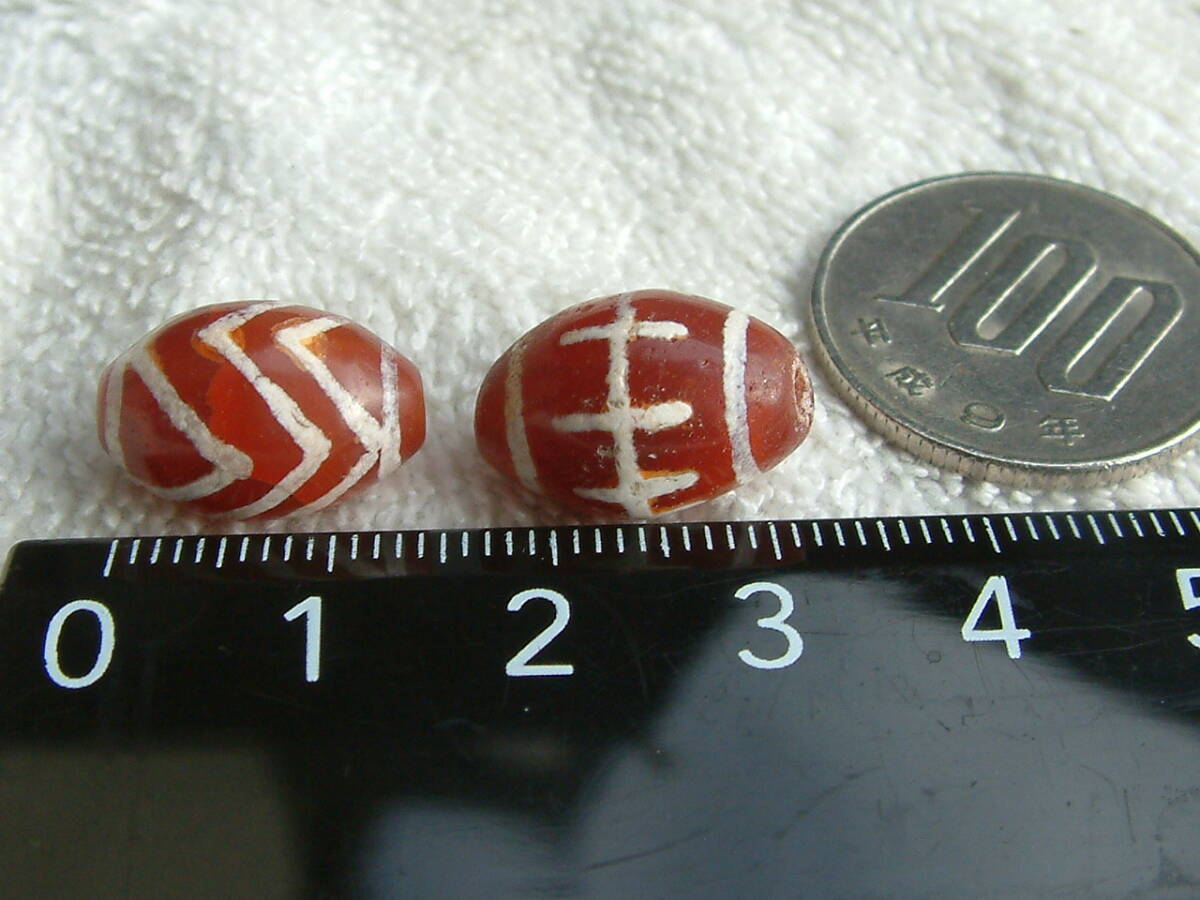 917【天珠八仙】〈作成に/エッチドカーネリアン〉..(小型現代)古代密教型図案天珠..約1.5㌢×2個で、