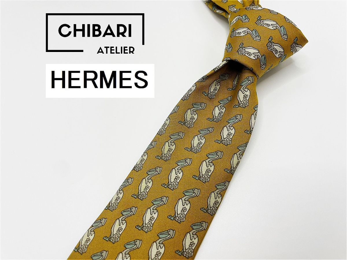 【超美品】HERMES エルメス 動物柄 ネクタイ 3本以上 送料無料 メンズ ブラウン 1002266