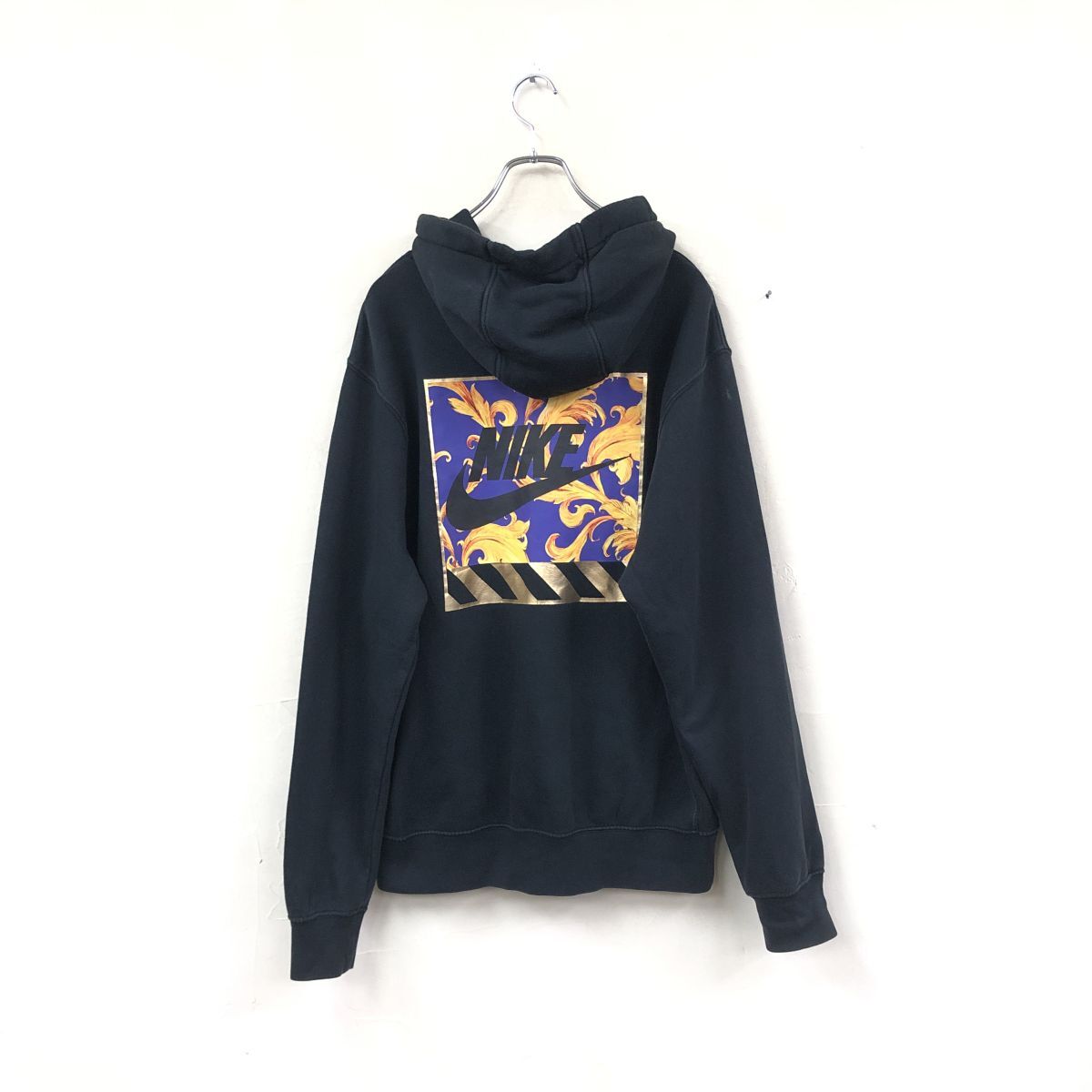 2O3419-Y◆NIKE ナイキ プルオーバーパーカー フーディー 裏ボア ロゴプリント メンズ カジュアル 秋冬 ◆sizeM ブラック 綿