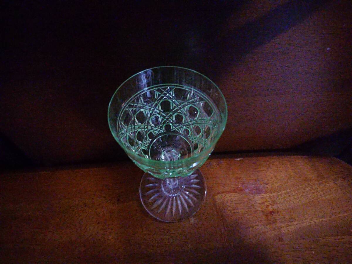 高さ12.7センチ、口縁の径6.5センチ、オールドバカラの香水瓶のダイアモンド石カット装飾が、そのままグラスのカップの部分に使われたグラスです。美品です。