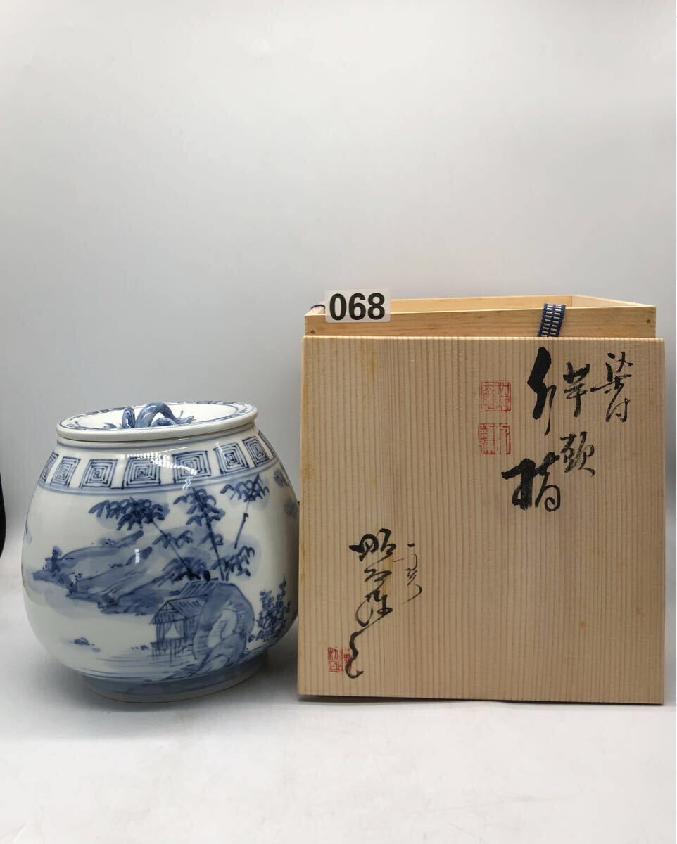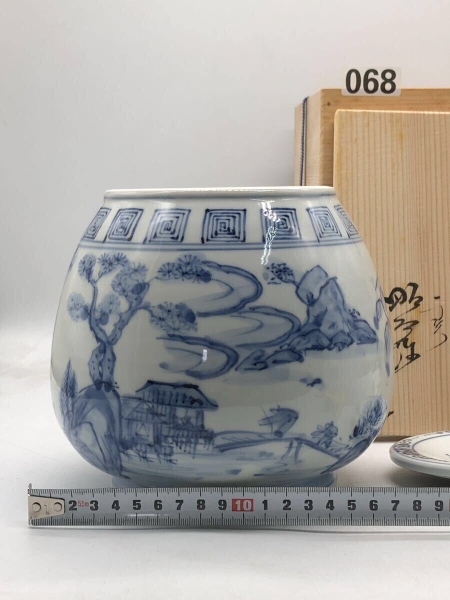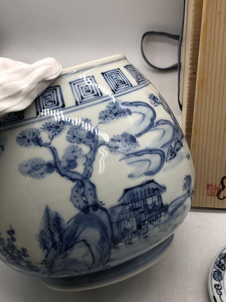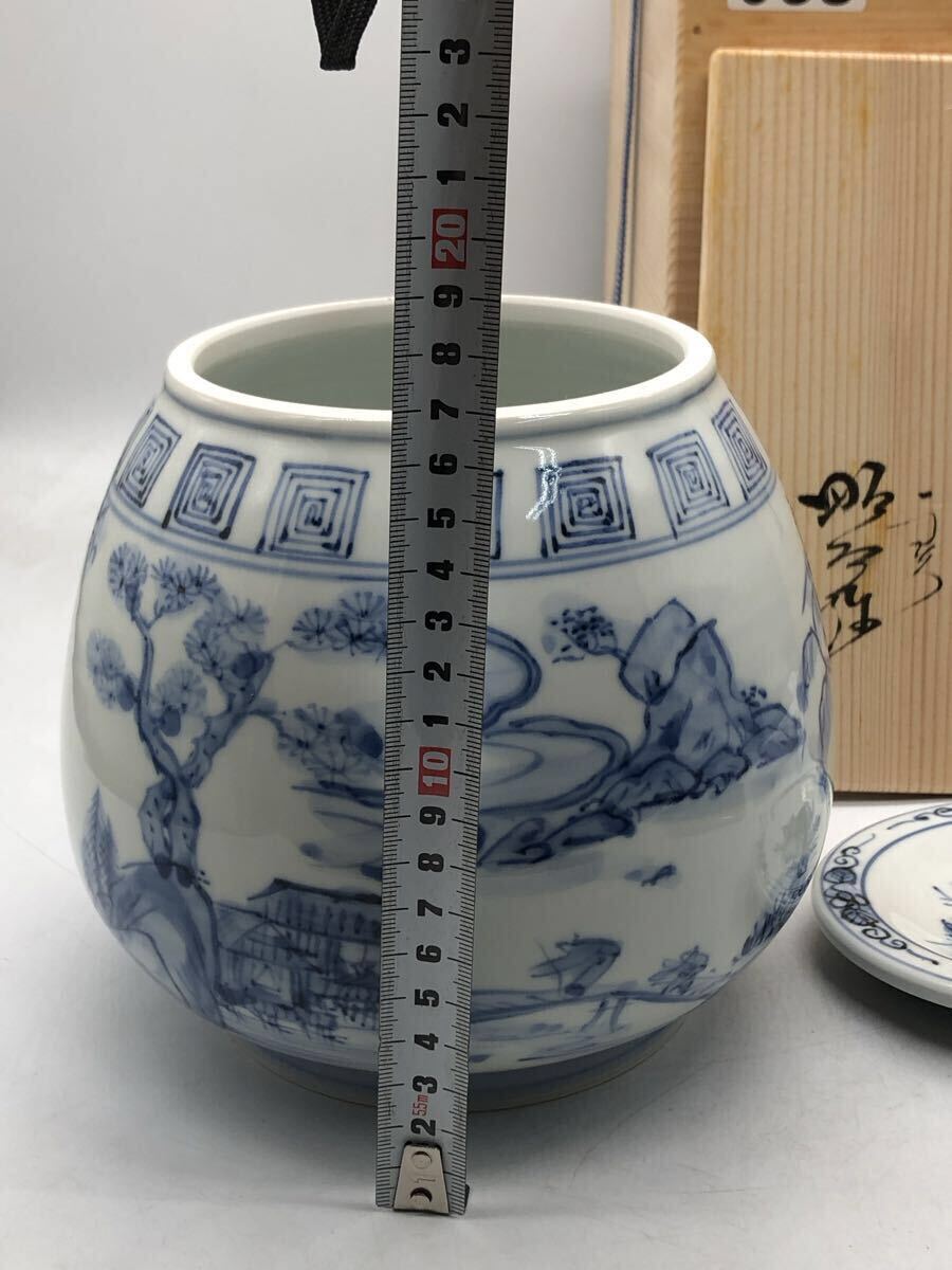 こちらは、京焼の名工 高野昭阿弥による「染付 山水文 水指(みずさし)」です。