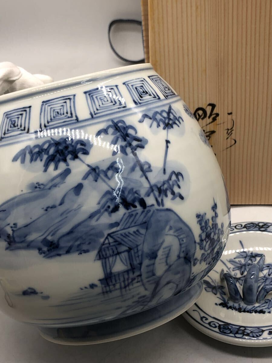 清新な染付の筆致にて山水図が器面に描かれており、茶席・茶道具としての格も備えた逸品です。