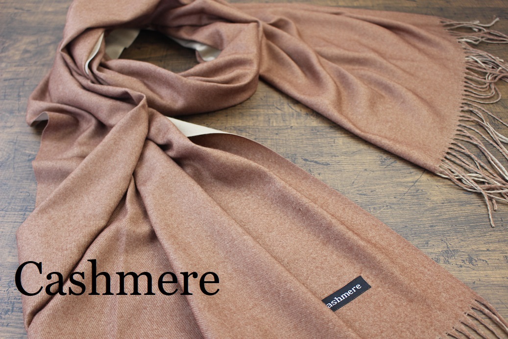 新品【カシミア Cashmere】リバーシブル 無地×無地 キャメルブラウン×ベージュ C.BROWN×BEIGE ライトタッチ ストール/マフラー