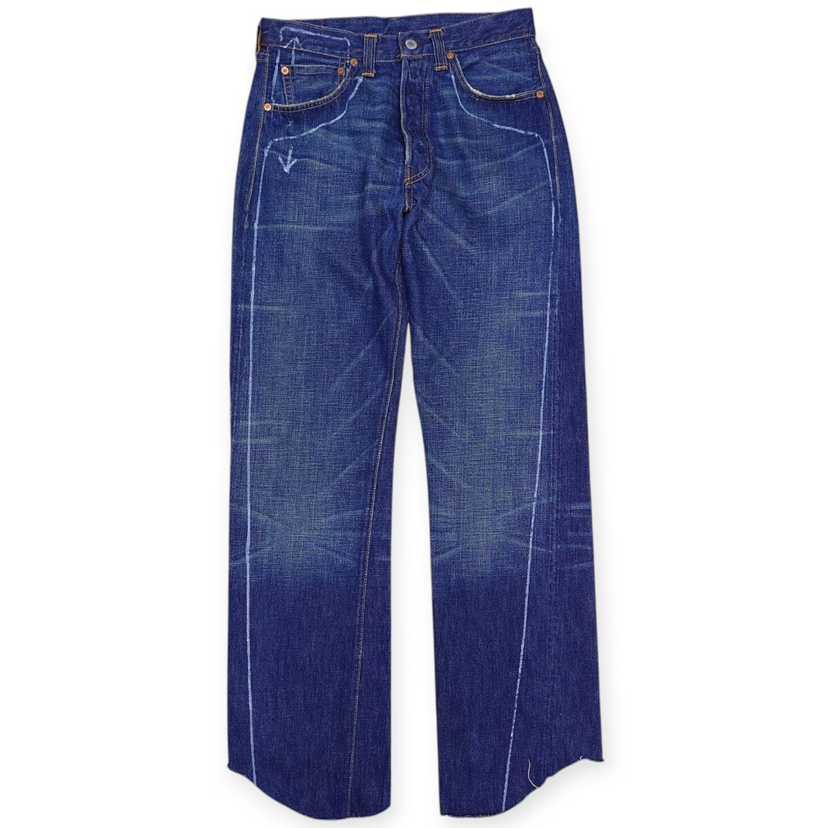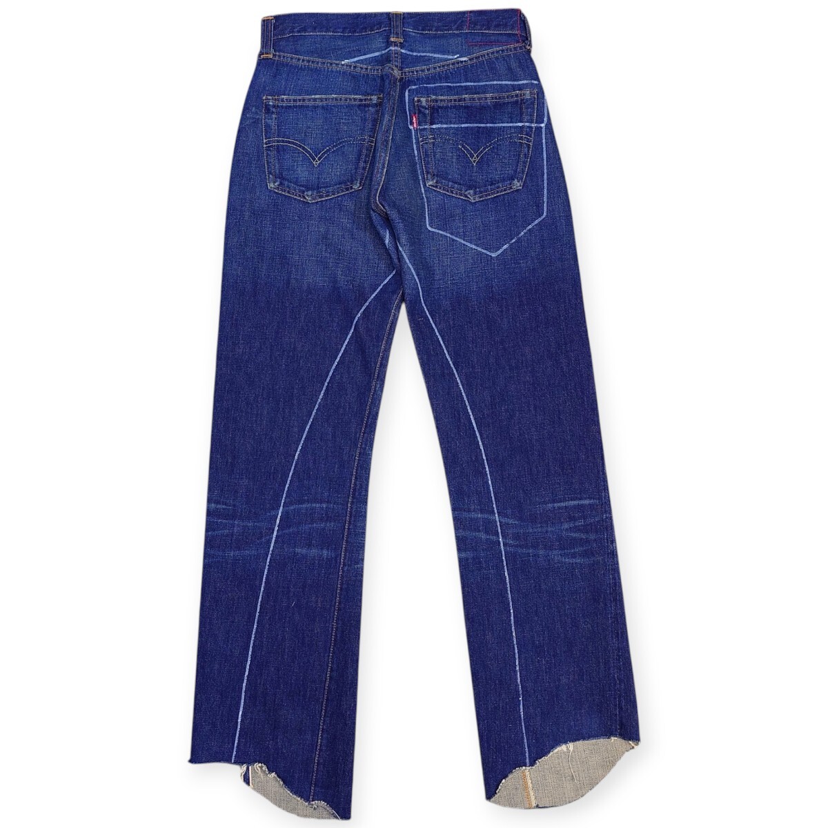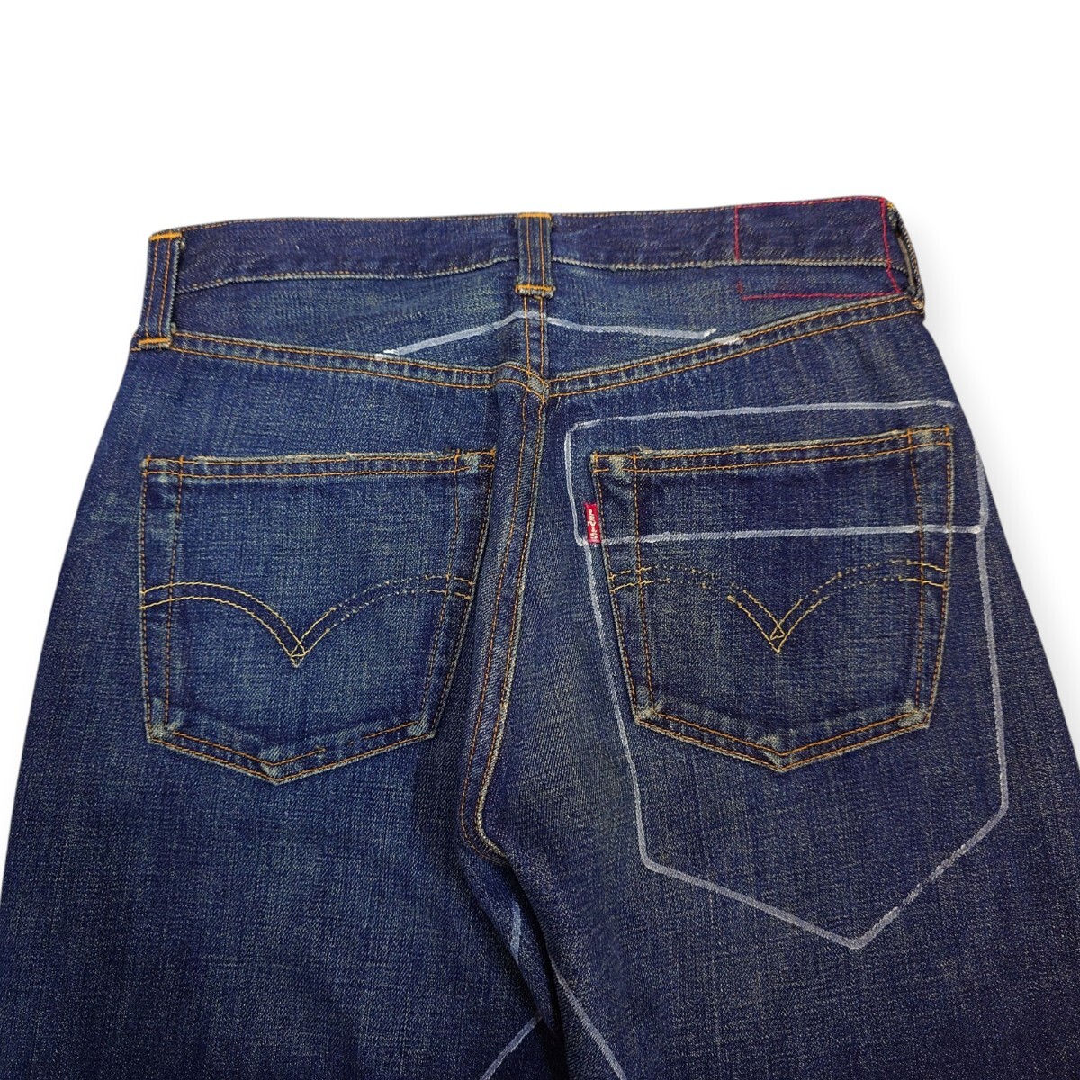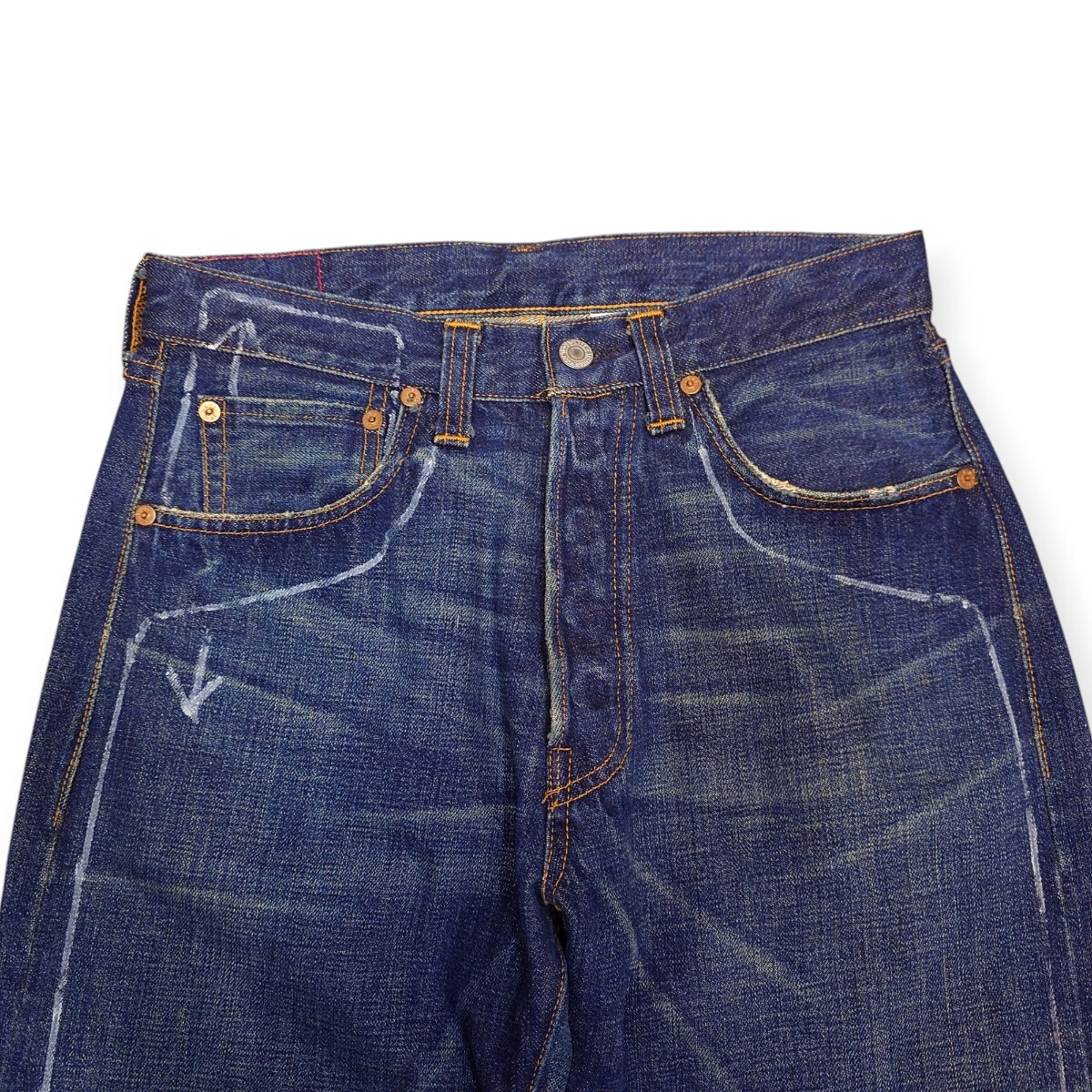 ・ベースとなったのは1947年501モデルで、各ディテールの変更なしで12~13オンス程のしっかりとした生地感、細めの赤ミミ、イエローアーキュエイトステッチに片面BIG E、Vステッチ、隠しリベット仕様です。